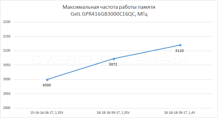 Учитывая отсутствие какой-либо более-менее вменяемой статистики по памяти DDR4 подход к разгону в очередной раз опять упрощен. Пока мы ограничимся поиском минимально доступных таймингов для 3000 МГц и максимально возможной частоты при воздушном охлаждении без учета задержек.