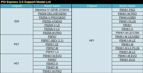 Воспользоваться преимуществами нового стандарта смогут владельцы 22 нм процессоров Ivy Bridge и топовых видеокарт AMD/Nvidia одного из следующих поколений (мы пока даже не уверены в том, что это обязательно будут Radeon HD 7000 и GeForce 600). Обращает на себя внимание отсутствие в списке многих топовых плат – Asus Maximus IV Extreme-Z/Gene-Z/Extreme, Sabertooth P67 и др. Их объединяет поддержка SLI.