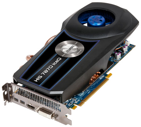 Флагман линейки HIS 7870 IceQ оборудован двухслотовым кулером с четырьмя медными тепловыми трубками и «турбиной» типоразмера 80 мм на двойном подшипнике качения. Альтернативная СО обещает быть на 20 °C холоднее эталонной, но и размеры ее значительно больше (длина карты составляет 297 мм).