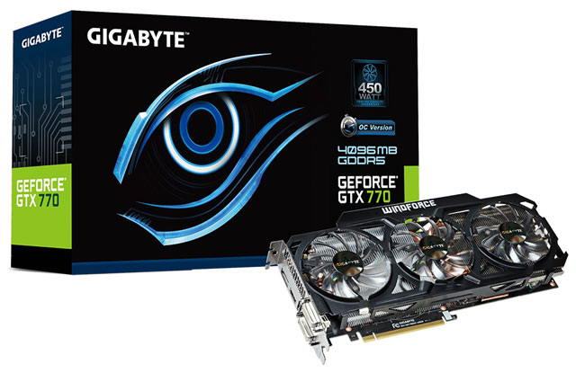 Продукт Gigabyte GV-N770OC-4GD основан на чипе Nvidia GK104-425-A2, который содержит 1536 потоковых процессоров и 256-битную шину памяти, сообщающуюся с 16 микросхемами GDDR5 общим объемом 4 ГБ. Предустановленный кулер включает медное основание, шесть медных тепловых трубок (4x 6-мм, 2x 8-мм), две секции алюминиевых пластин и три 80-мм вентилятора. Конструкцией модели GV-N770OC-4GD предусмотрены два разъема SLI, разъемы дополнительного питания PCI-E Power на 6 и 8 контактов.