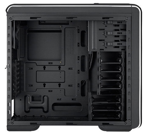 Корпус оснащен пылезащитными фильтрами, отверстиями для укладки кабелей и подводки шлангов СВО, индивидуальными лотками для накопителей и приспособлениями для безвинтового крепления устройств форм-фактора 5,25".