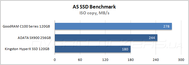 Детальный анализ результатов показывает, что GoodRAM C100 Series 120GB во всех сценариях опережает накопитель Kingston, или показывает идентичные с ним результаты, а от лидера ADATA отстает только в подтесте Starting Application. Очевидно, это, а также не лучшие результаты в тестовом сценарии Gaming, определило вторую позицию новичка в общем зачете.