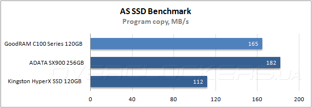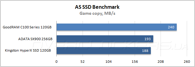 Для оценки производительности операций копирования использовалась программа AS SSD Benchmark, которая эмулирует перенос директорий с различными наборами файлов.