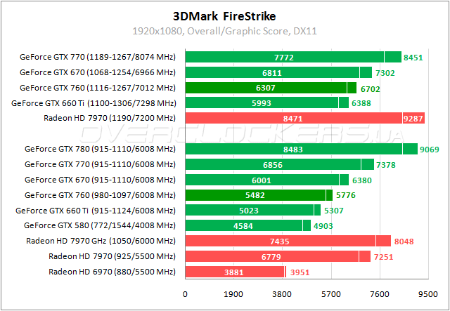 | Видеоадаптер | GeForce GTX 780 | GeForce GTX 770 | GeForce GTX 670 | GeForce GTX 760 | GeForce GTX 660 Ti | GeForce GTX 580 | Radeon HD 7970 GHz Edition | Radeon HD 7970 | Radeon HD 6970 |