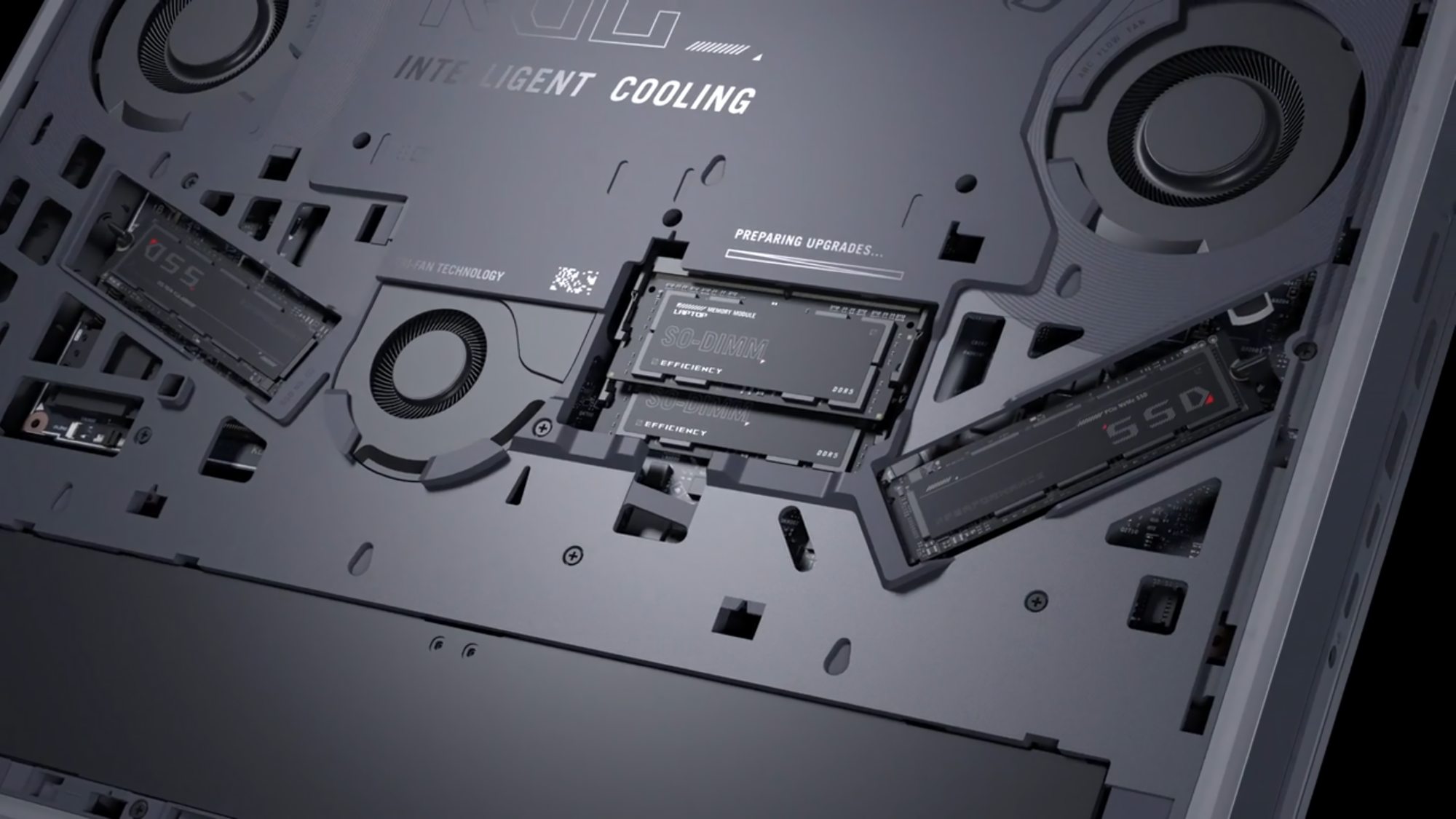 Якщо ви придбали не найтоповіший варіант ROG Strix G16 (G615), з часом можете без проблем збільшити обсяг пам’яті та сховища. Конструкція передбачає можливість апгрейду і простий доступ до двох слотів пам’яті та двох відсіків для накопичувачів M.2 2280.