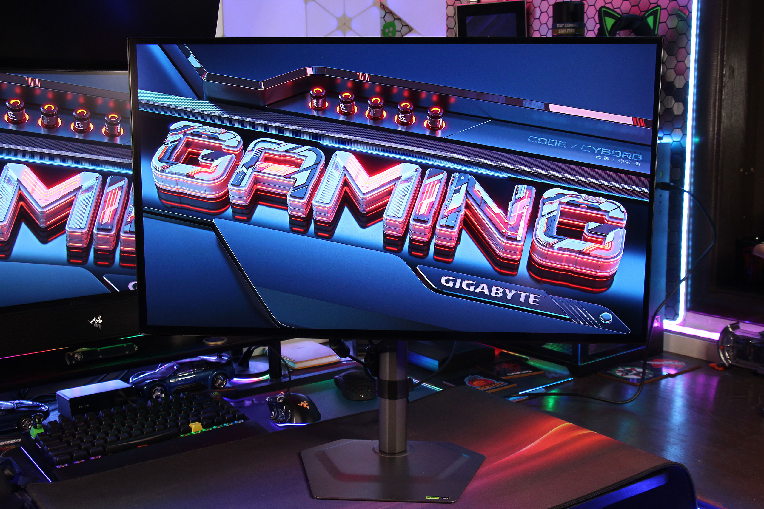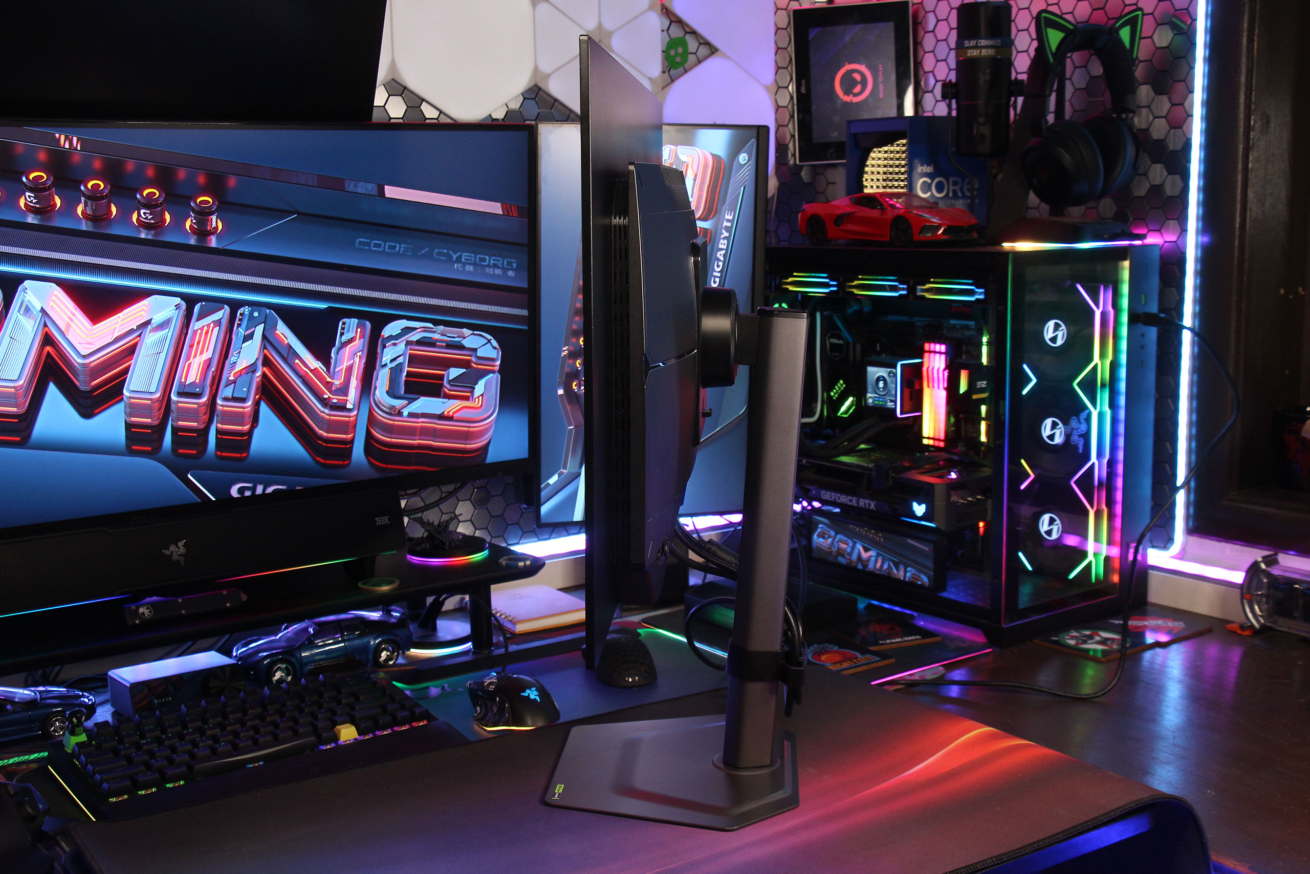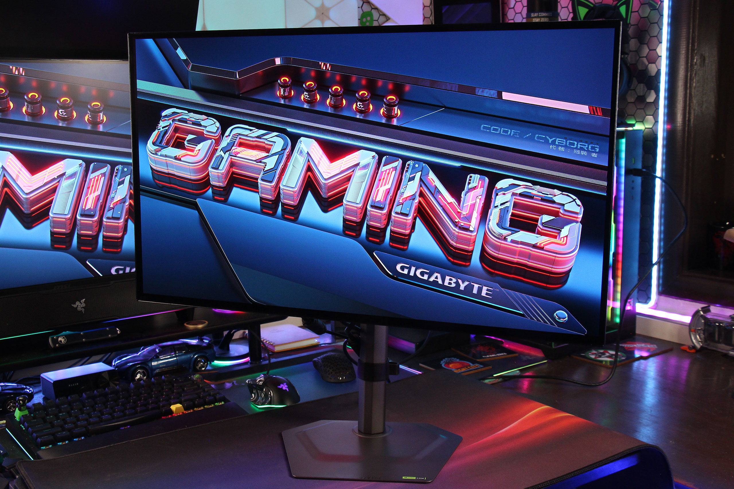 Профіль монітора демонструє типову для OLED тонкість по краях, де товщина становить лише кілька міліметрів. Центральна частина дещо товща через розміщення електроніки та системи пасивного охолодження. Gigabyte використовує безвентиляторну конструкцію з масивним радіатором, що забезпечує абсолютно безшумну роботу.