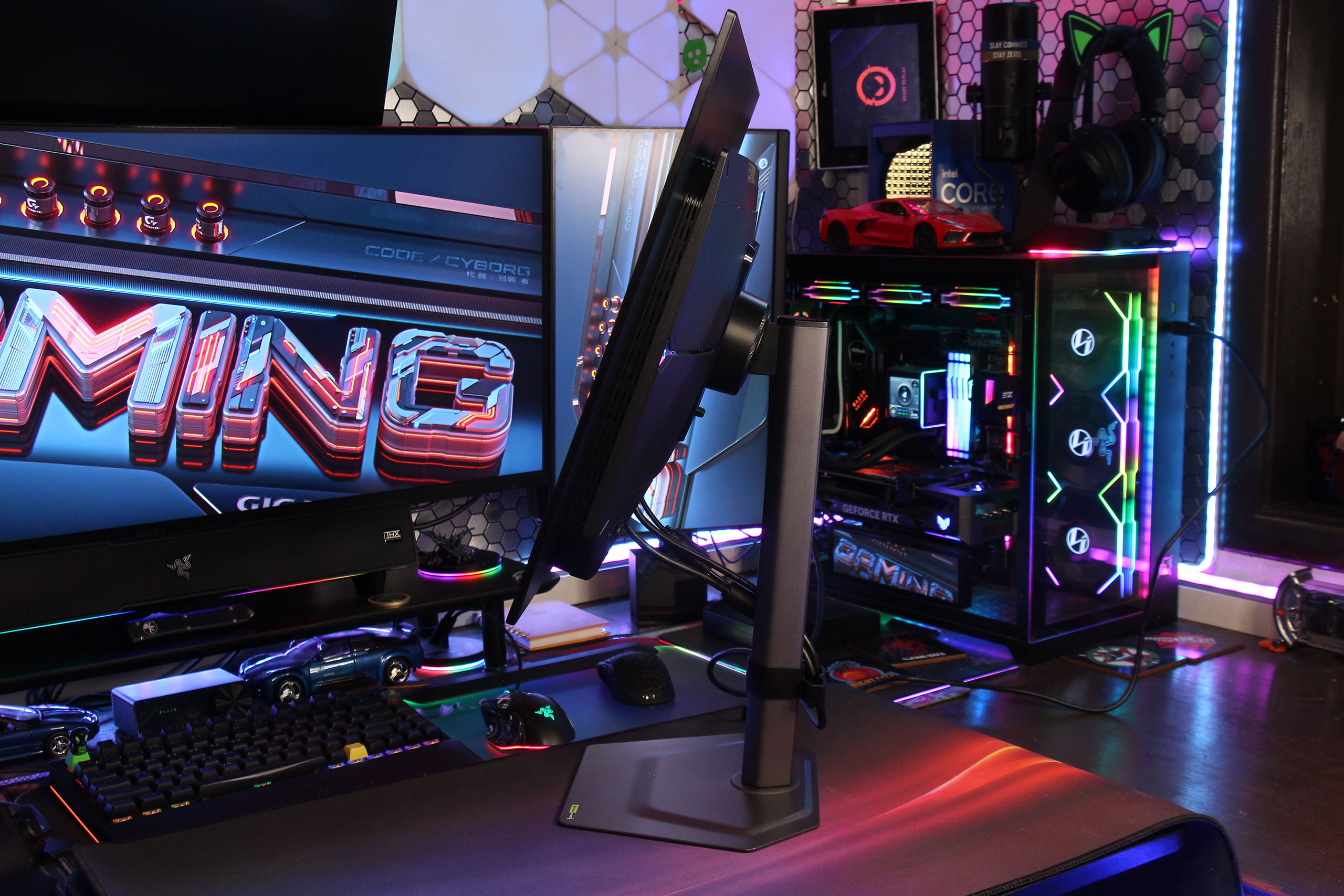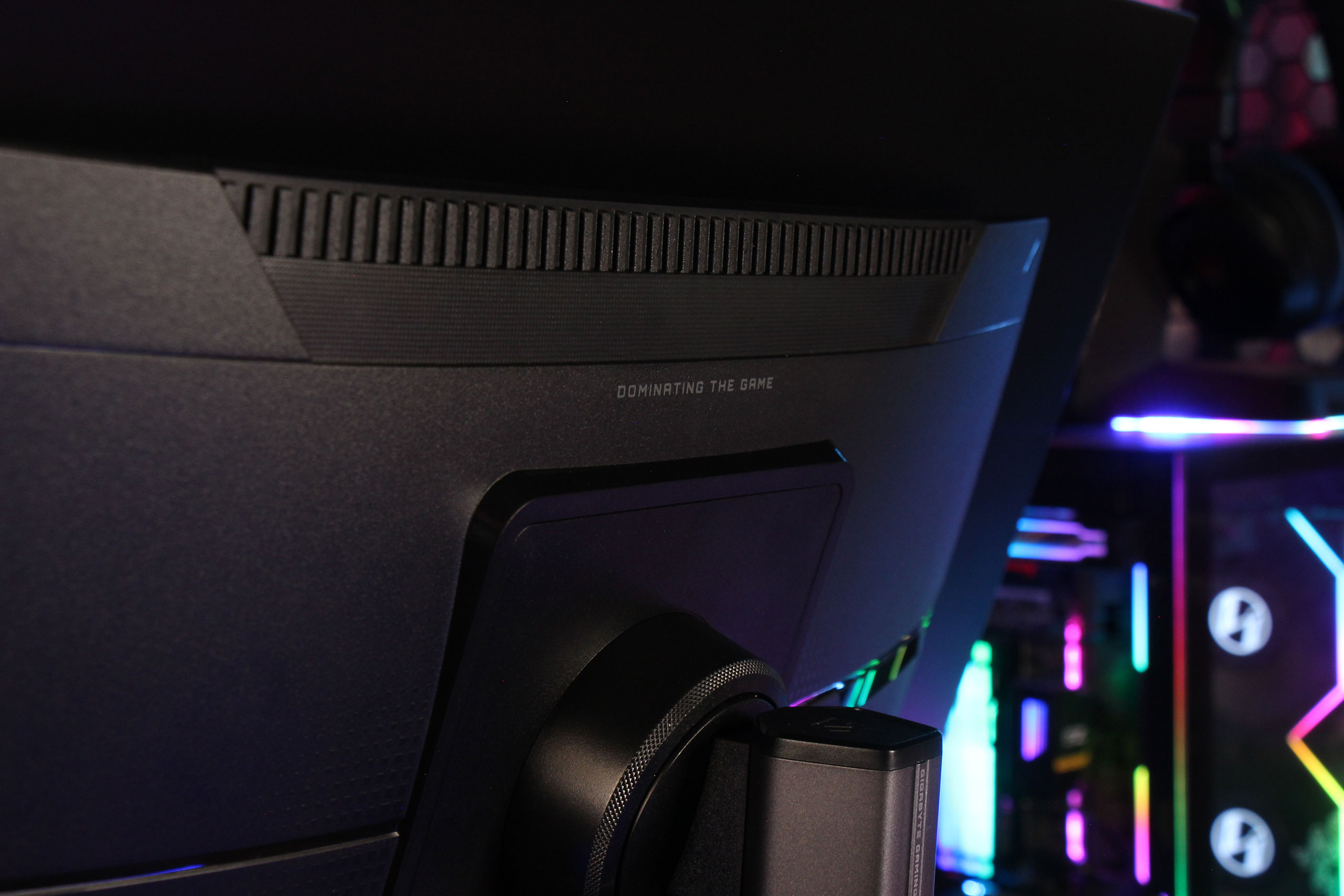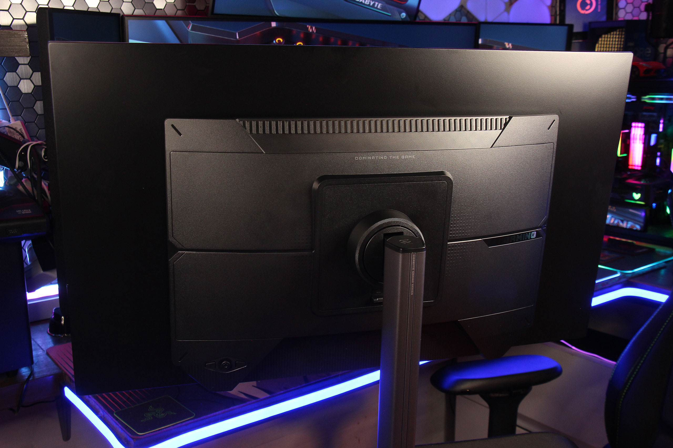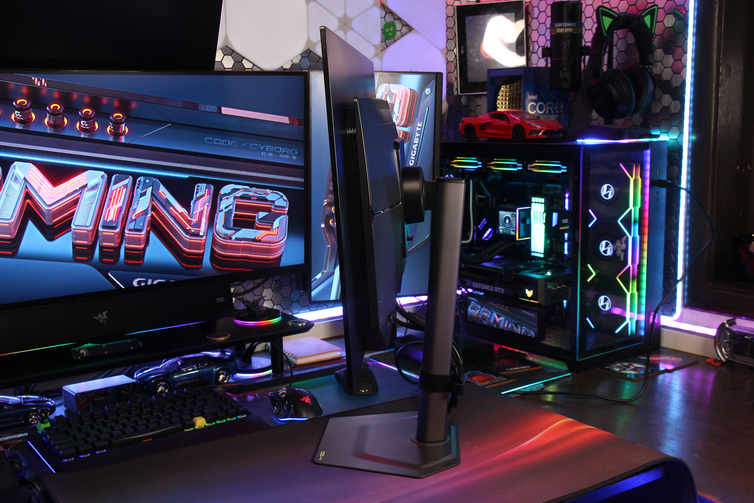 Профіль монітора демонструє типову для OLED тонкість по краях, де товщина становить лише кілька міліметрів. Центральна частина дещо товща через розміщення електроніки та системи пасивного охолодження. Gigabyte використовує безвентиляторну конструкцію з масивним радіатором, що забезпечує абсолютно безшумну роботу.