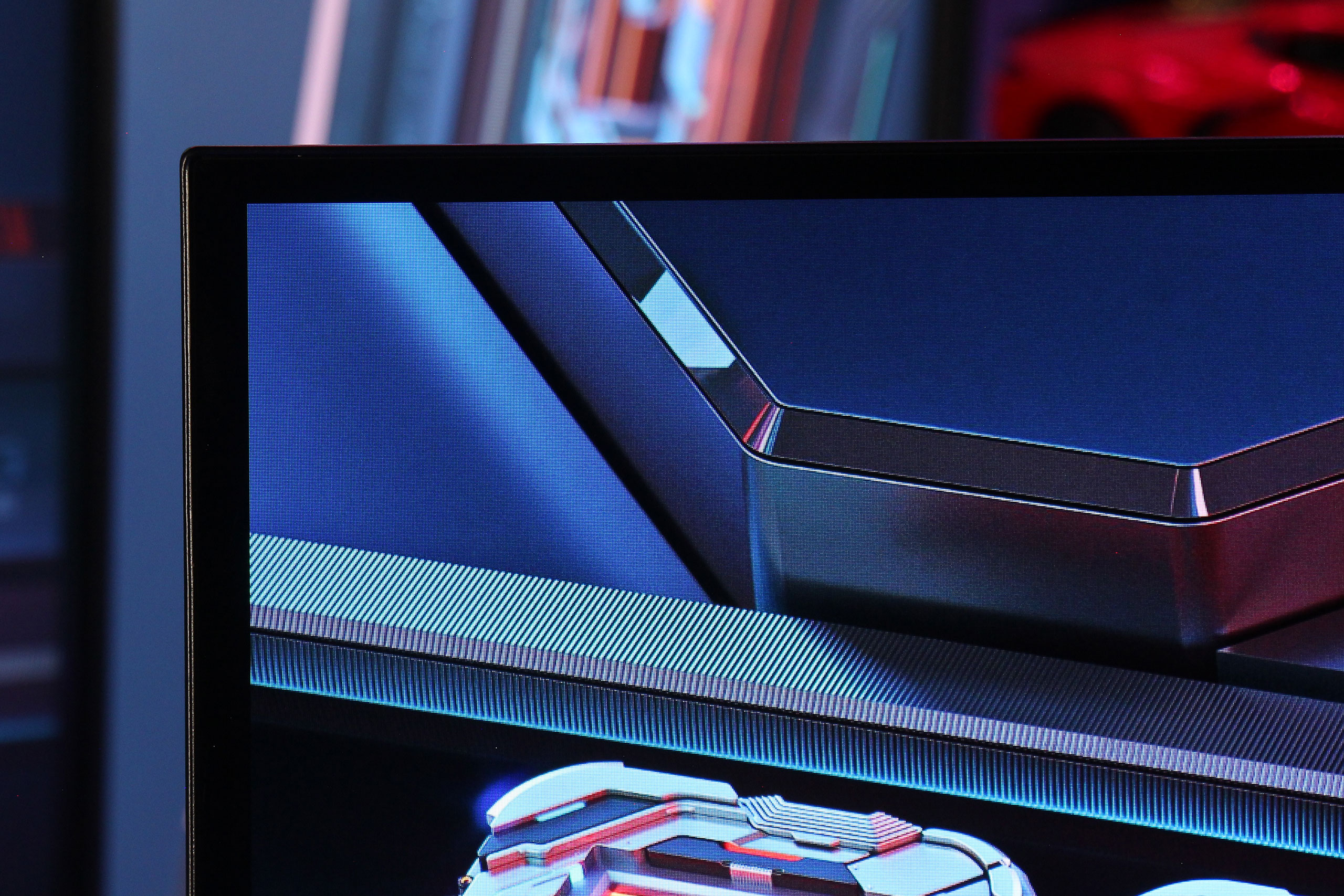 Передня панель монітора практично повністю зайнята 27-дюймовим екраном з ультратонкими рамками з усіх чотирьох сторін, що створює враження безрамкового дисплея. Враження, як завжди, зникає при ввімкненні пристрою, але 5–7 мм фактичної рамки все ще відносять його до «тонкорамкових». Але все ж таки у вимкненому стані найбільш помітною особливістю зовнішнього вигляду є матове покриття екрана. На відміну від глянцевих панелей, які демонструють дзеркальну поверхню, MO27Q28G має агресивне антиблікове покриття з заявленим показником 99% поглинання відблисків. Це робить монітор придатним для використання у яскраво освітлених приміщеннях, проте має свої візуальні наслідки у вигляді дещо менш разючого зображення в темніших умовах. Таке обережне формулювання використано тому, що це чесно — відношення до покриття моніторів в результаті є суб’єктивним питанням.