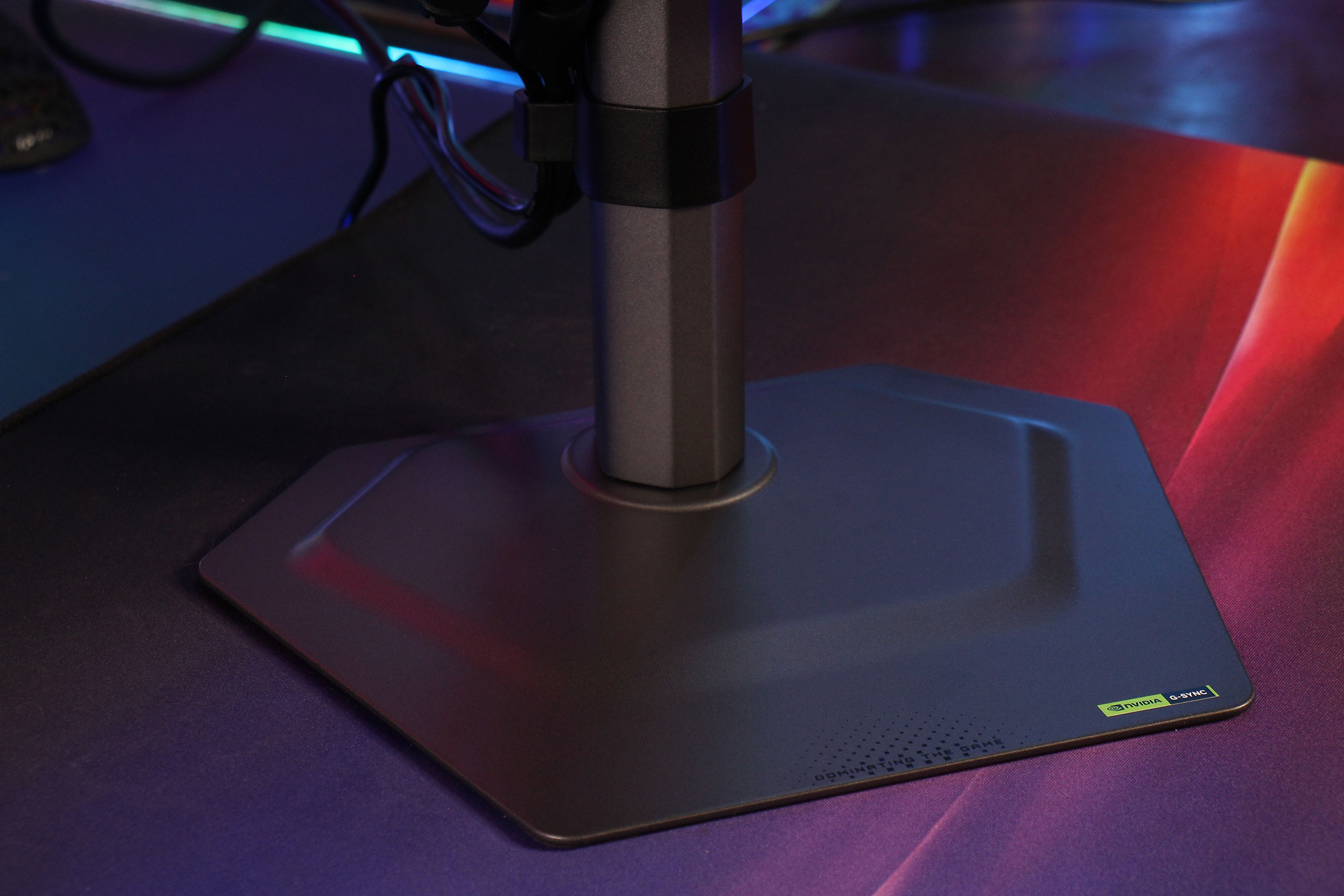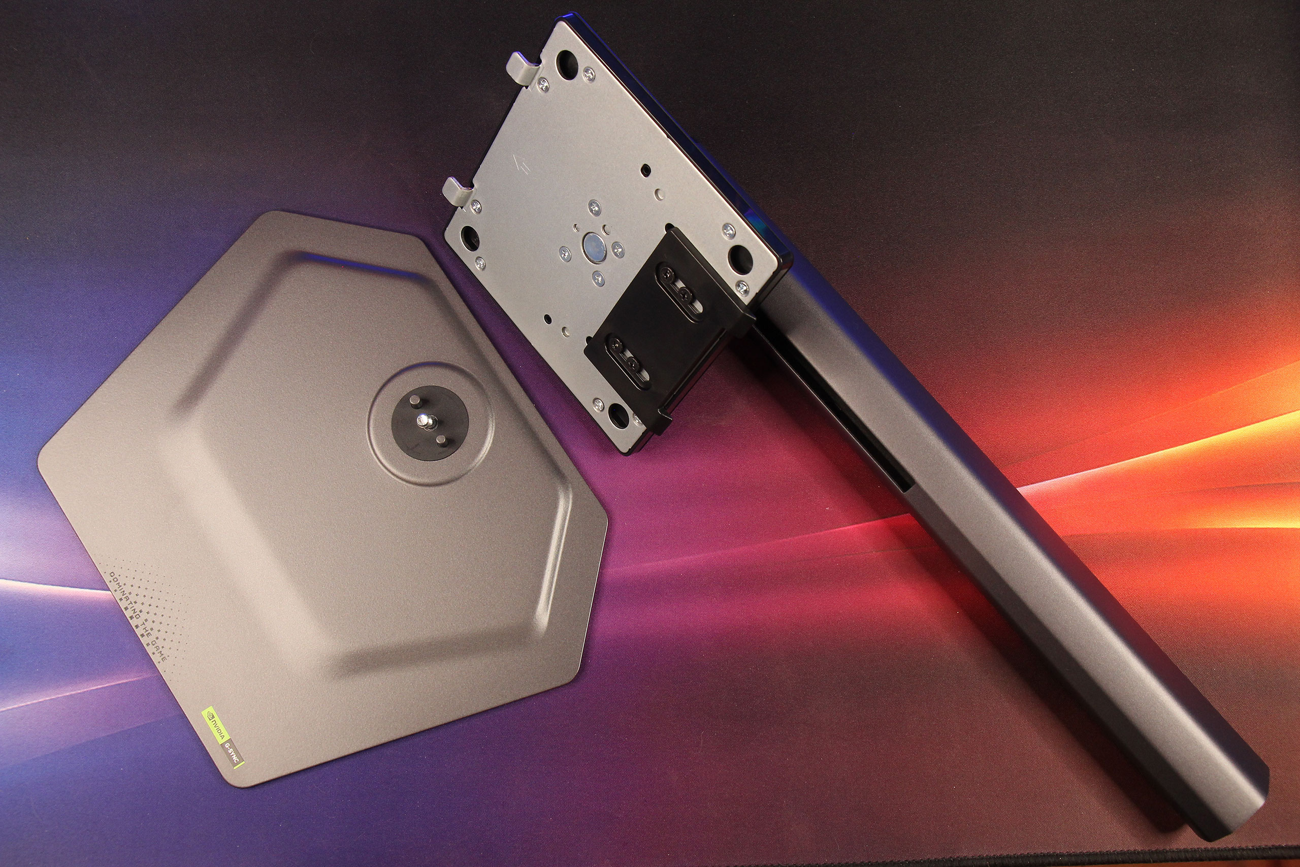 Підставка є однією з головних дизайнерських особливостей. Металева конструкція з ультратонкою основою товщиною лише 2 мм займає мінімум місця на столі, зберігаючи при цьому достатню стабільність. Вона дуже тонка, тому не буде заважати клавіатурі чи чомусь ще на столі біля монітора.