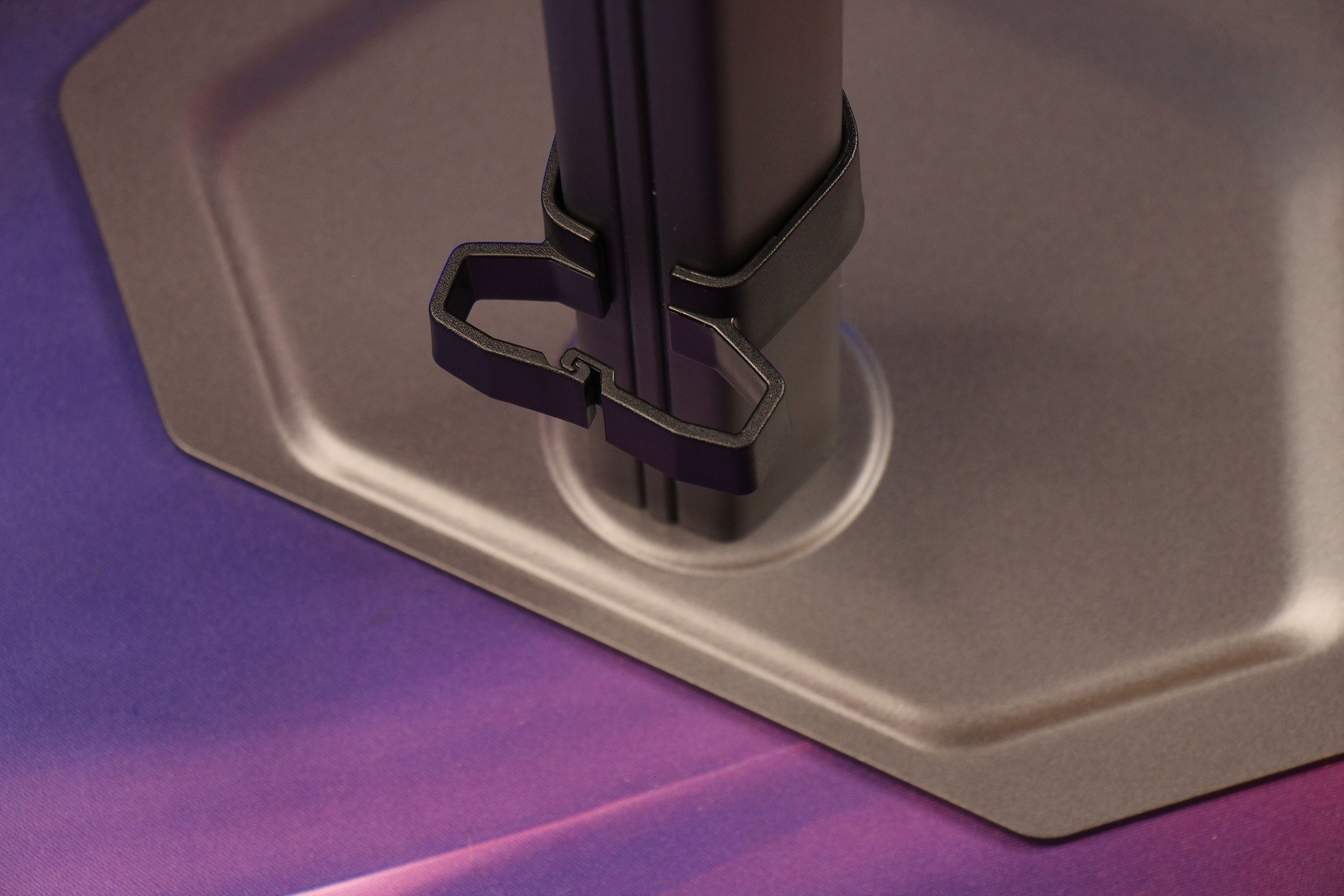 В комплекті постачання присутня пластикова кліпса, що надягається на металеву ніжку та працює як кабель-менеджмент. На диво, в принципі зі своїм завданням вона здатна впоратися, навіть якщо до монітора під’єднано багато кабелів.