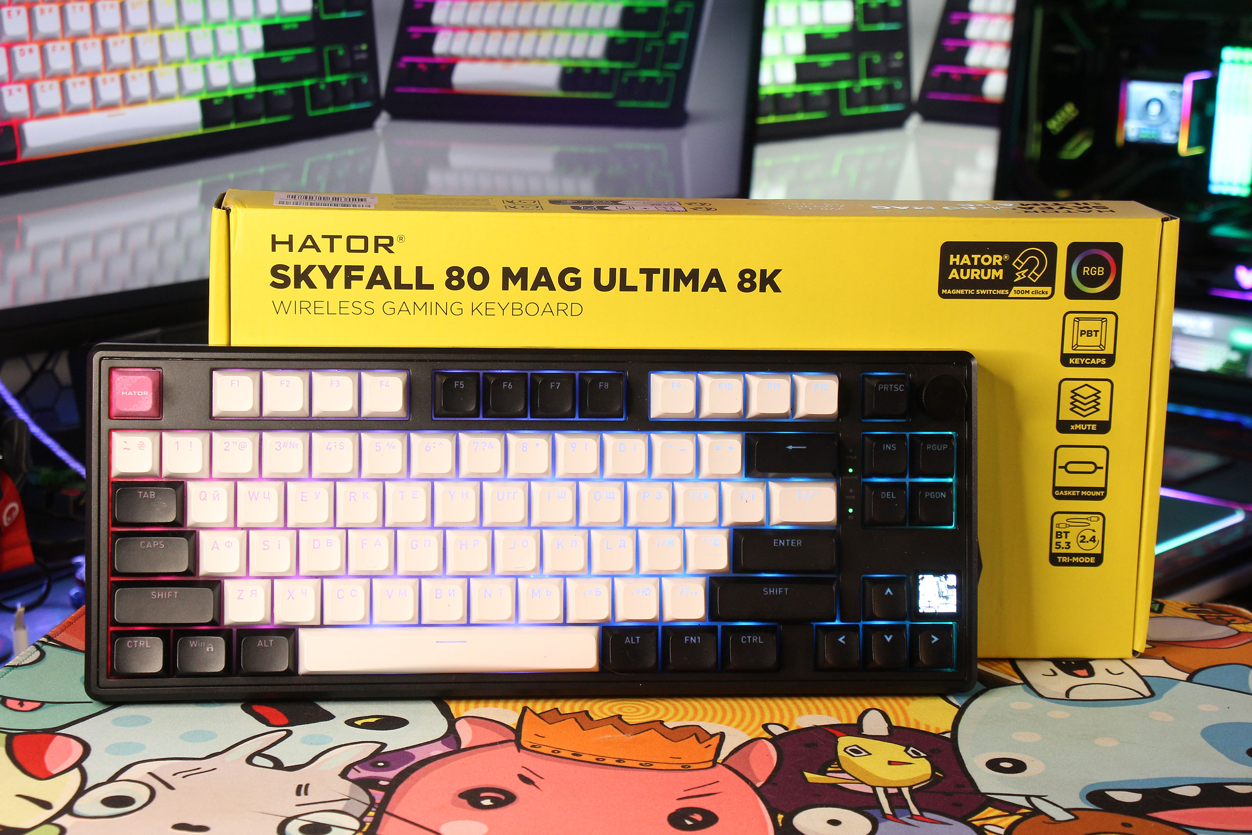 В огляді HATOR Skyfall 80 Wireless ми передбачали, що лінійка продовжуватиме розширюватися цікавими варіантами. Так і сталося: з’явилися моделі Pro Wireless з тихими перемикачами, різні колірні рішення та формфактори. Але найважливішою новинкою стала Skyfall MAG Ultima 8K Wireless з магнітними перемикачами. Це перша магнітна клавіатура в історії HATOR, і вона одразу мітить у найвищий сегмент технологій введення.