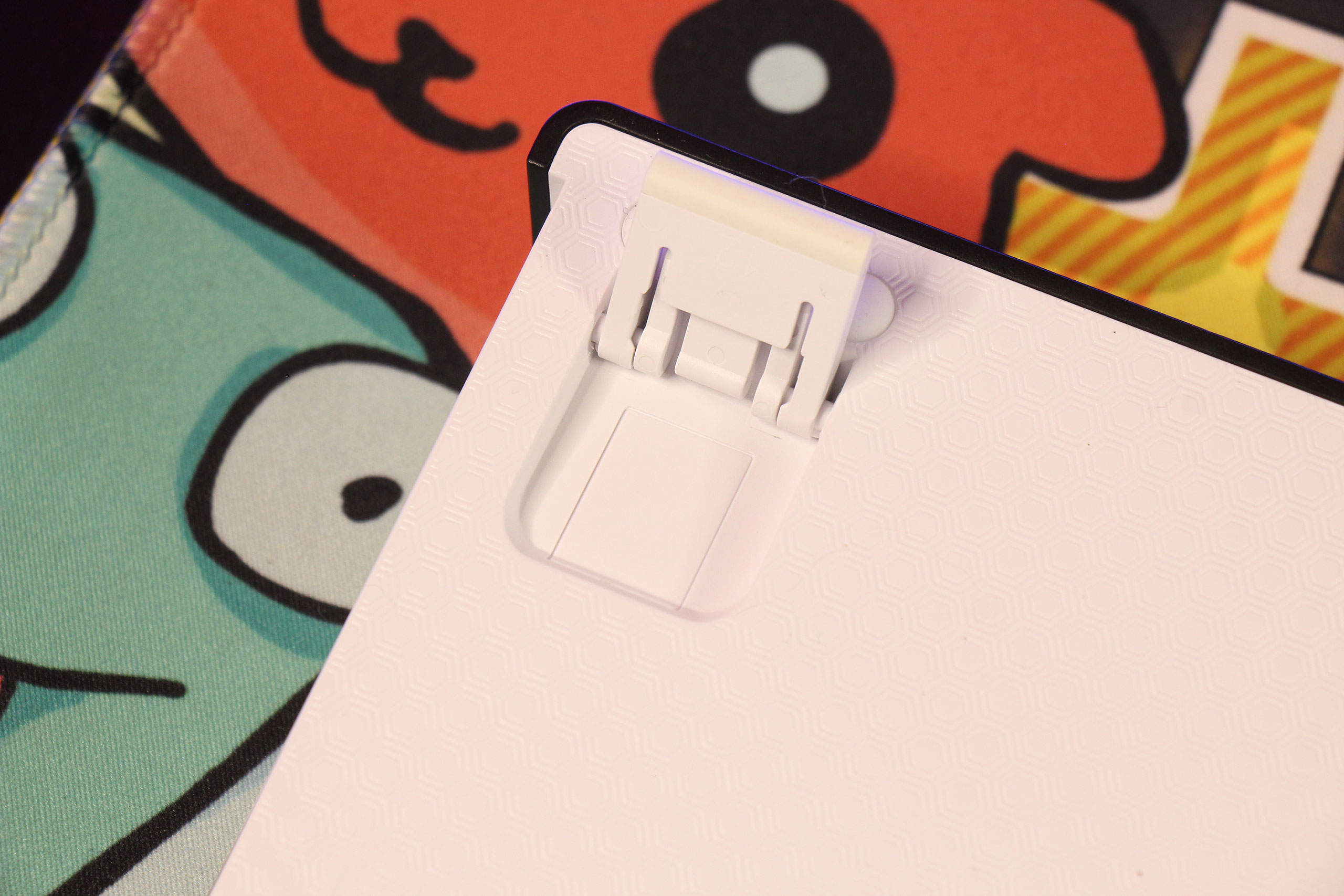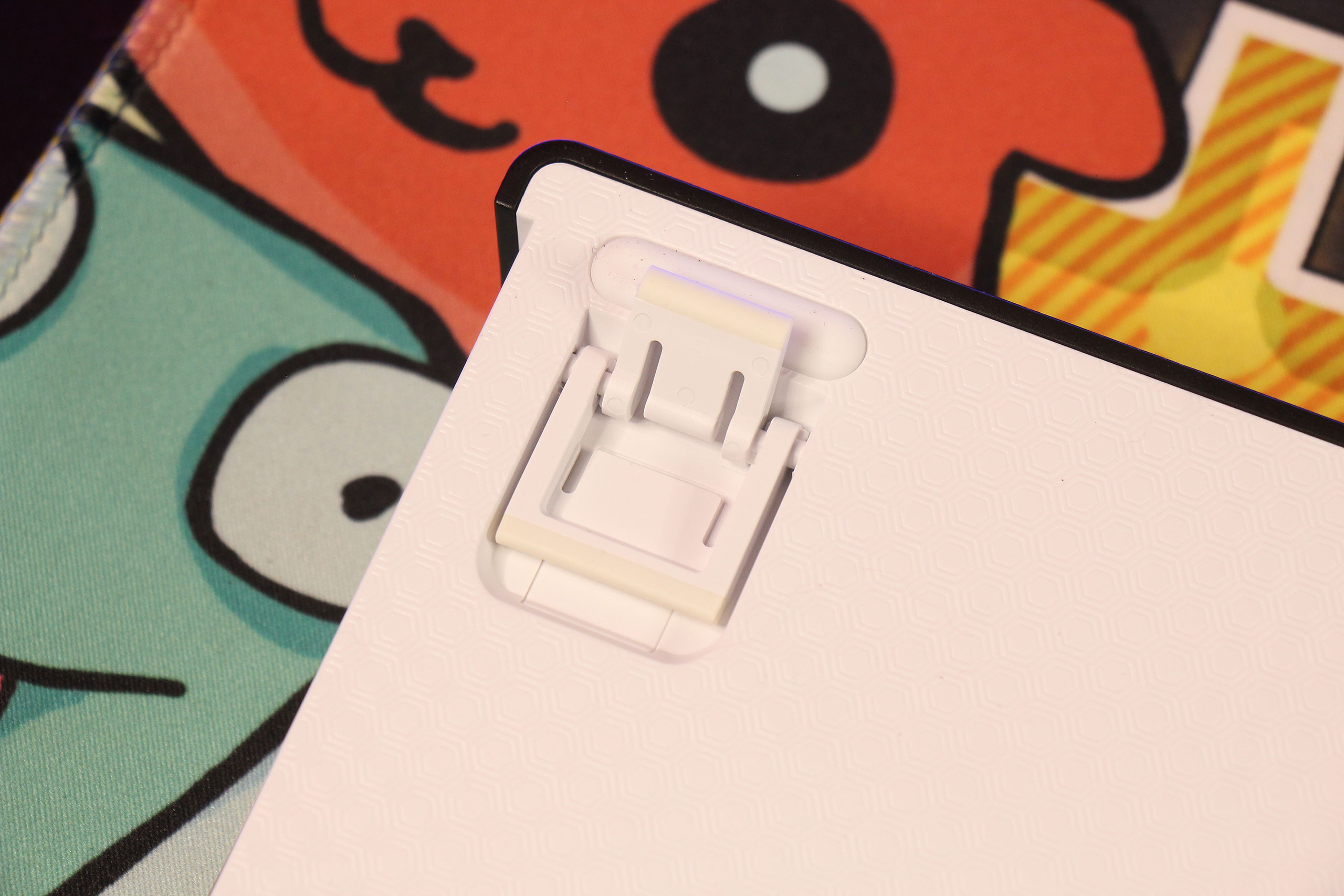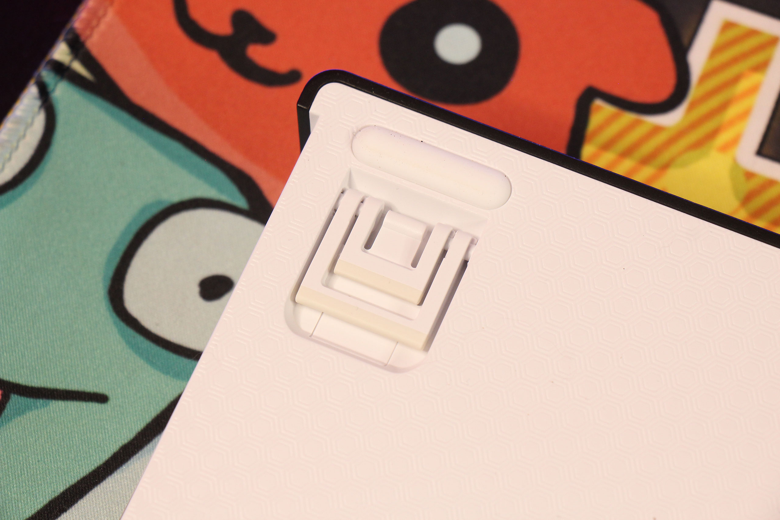 Ніжки клавіатури мають два положення нахилу (6° та 9°) на додачу до плоского. Гумові накладки забезпечують стабільність на столі в усіх положеннях.