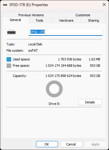 Після форматування користувачу буде доступно 953 ГБ вільного простору. Різниця в місткості від початкового значення зумовлена різними одиницями вимірювання, бо виробники роблять розрахунки у десятковій системі обчислення, а операційна система Windows — у двійковій. Тож на превеликий жаль, правильні одиниці вимірювання в операційній системі та й в цілому, а в нашому випадку це ГіБ, досі не прижилися.