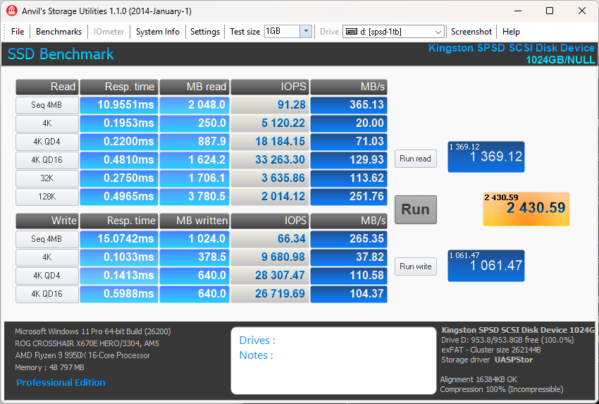 Якщо читача відвідували NSFW-думки на кшталт як можна підкинути старій платформі Slot A з 1999 року один терабайт пам’яті… це технічно можливо з цим накопичувачем, адже він здатний працювати в умовах USB 1.0. Це підтвердила саме така платформа з процесором AMD Athlon 750 (Pluto, Slot A). Тож якщо потрібне стикування світів минулого тисячоліття і сьогодення, можете сміливо дивитися у бік Kingston SSD Dual Portable 1TB, головне, щоб операційна система нативно або з латками підтримувала файлову систему exFAT.