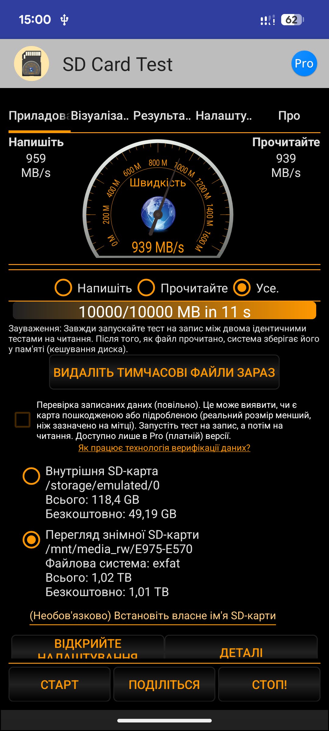 | Швидкість послідовного запису, Мбайт/с | 950 | ||
