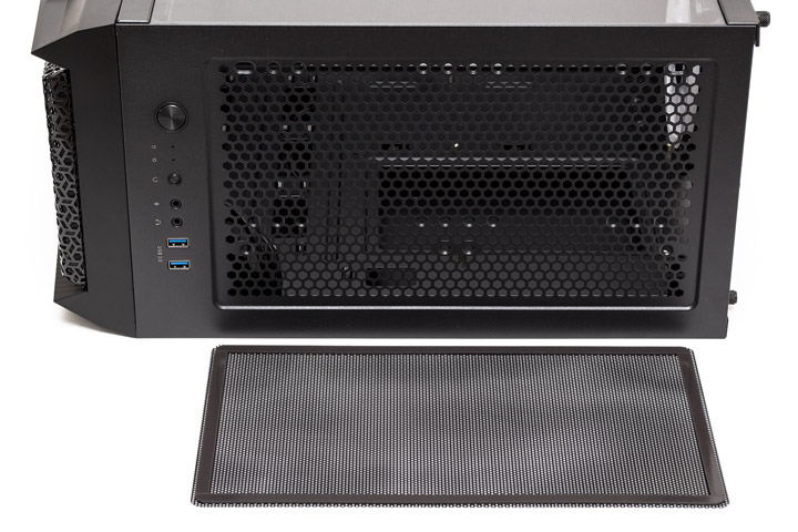 Значительную часть верхней панели занимает вентиляционная решетка, прикрытая магнитным пылевым фильтром.
