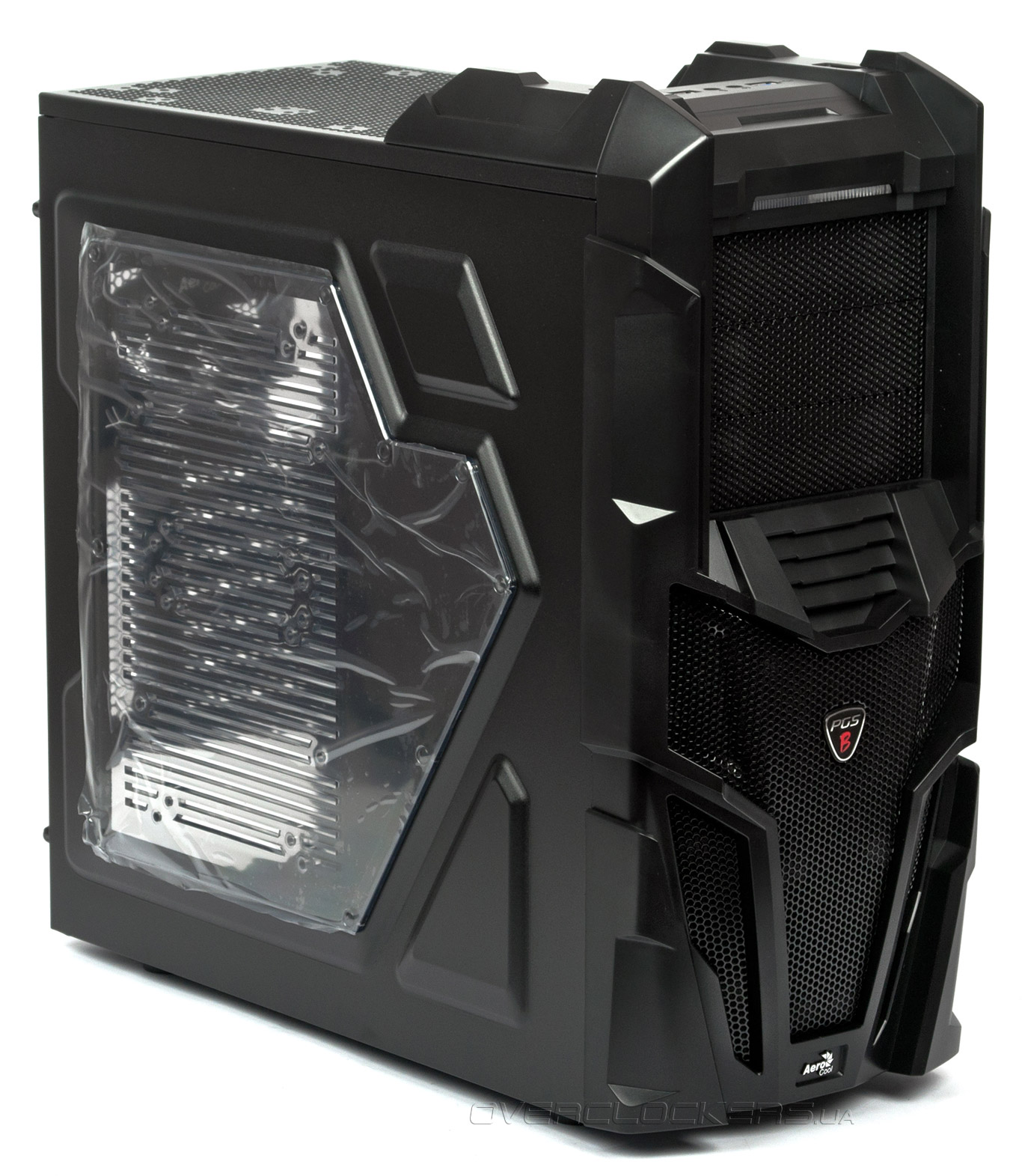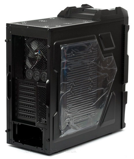 В прозрачном пластике имеются вентиляционные прорези по всей высоте. Защита от пыли отсутствует. Аналогично с верхней и передней панелями, есть посадочные отверстия для одного 200-мм, либо двух 120-мм или 140-мм вентиляторов. Крепить пропеллеры здесь желательно на «резиновые гвозди», поскольку существует риск повредить стекло, закручивая шурупы. Правая боковая дверца — сплошная, без штамповки. На корпусе обе панели фиксируются с помощью винтов с накатанной головкой — по два на каждую. Способ снятия традиционный — путем сдвигания назад. А вот с установкой могут быть проблемы. Низкая поперечная жесткость панелей сильно усложняет задачу одновременного попадания во все крепежные узлы, двух рук для этого явно мало.
