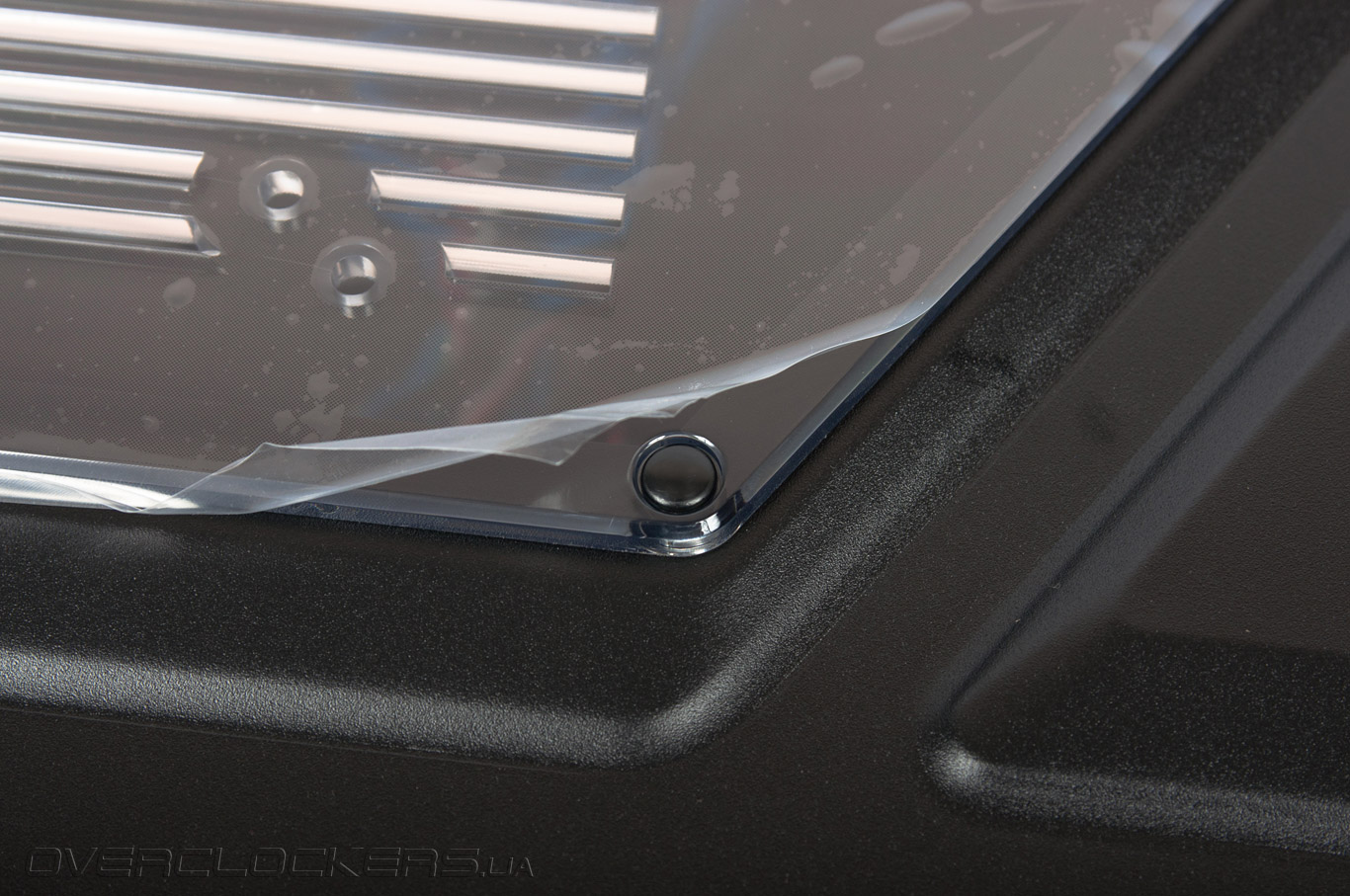 На тест нам был предоставлен экземпляр с акриловым окном на левой панели. На дверце есть штамповка и небольшие ребра жесткости внутри, которые немного упрочняют ее.