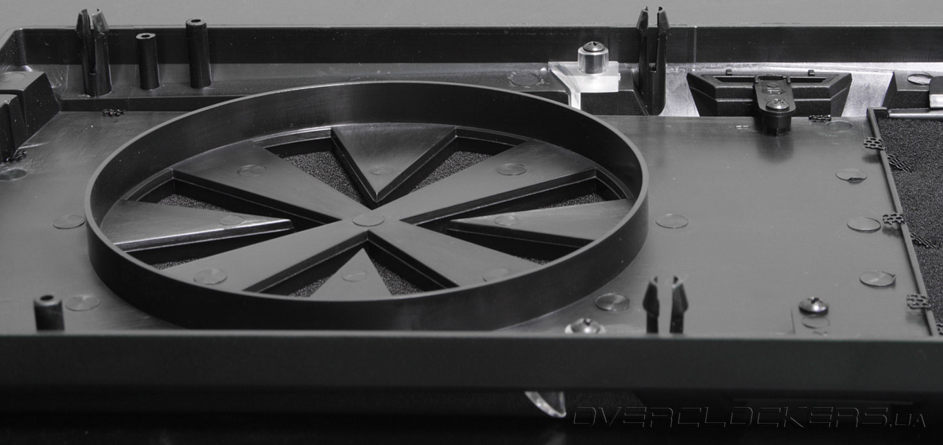 Ее внешность обманчива, ведь она не является полностью продуваемой. По сути, воздушный поток проникает только через специальные прорези напротив фронтального вентилятора. Отрадно видеть, что и это вентиляционное отверстие прикрыто плотным пылевым фильтром.
