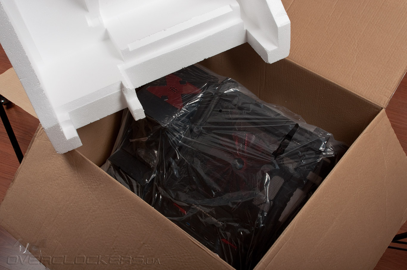 Стенд поставляется в очень массивной упаковке. Ее габариты — 630х710х450 мм. Масса — 10,6 кг. Ручки для переноски отсутствуют. Полиграфия на бортах содержит фотографии корпуса в разных ракурсах и короткую информацию о его основных характеристиках.