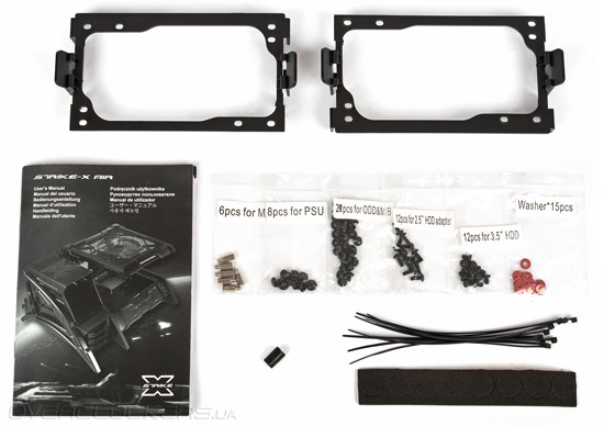 - три пластиковые пластины для крепления блока питания (две — запасные);