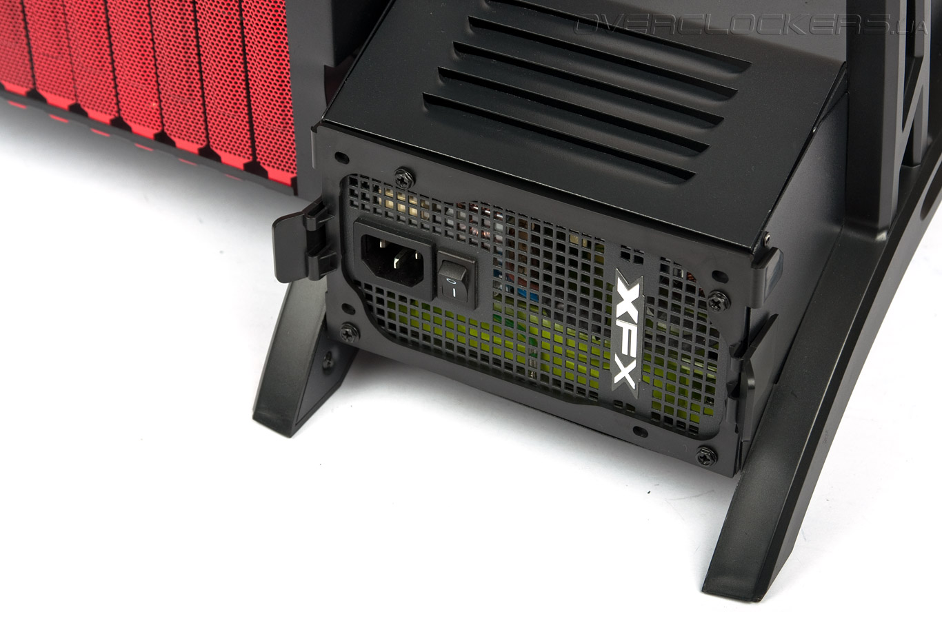Перед монтажом БП, к нему следует привинтить пластиковую планку с защелками, которая имеет только одно правильное положение. Потом к нему или на днище отсека следует приклеить четыре резиновых демпфера. После этого блок задвигается внутрь корпуса до щелчка. Защелки очень хрупкие.