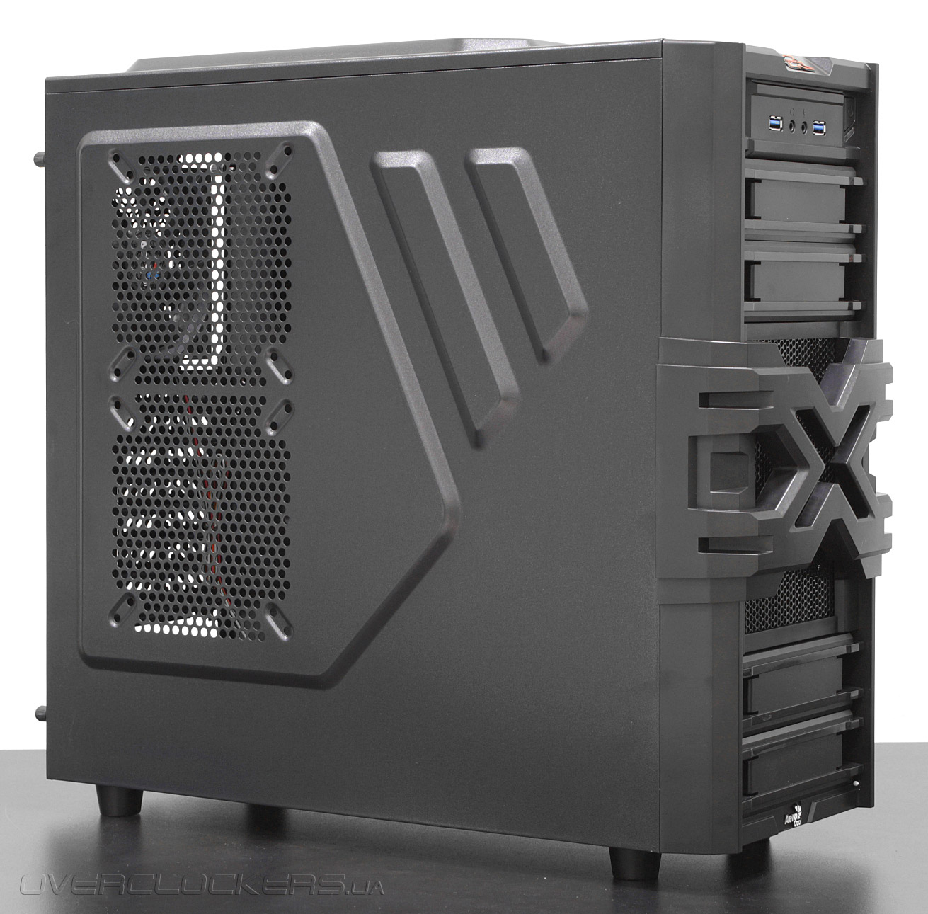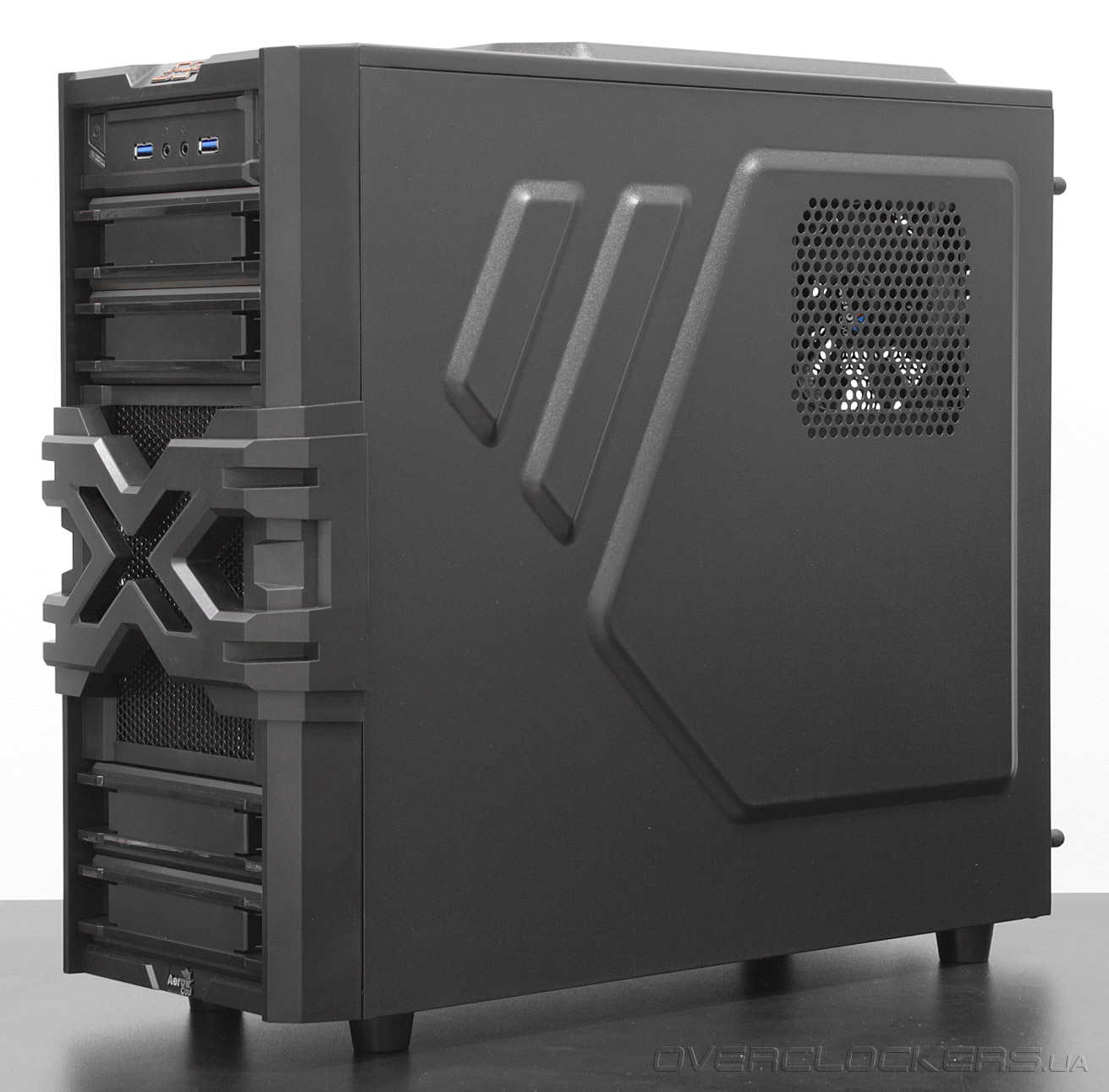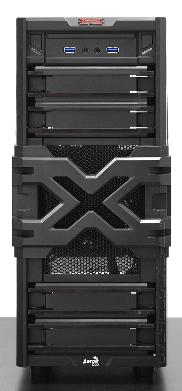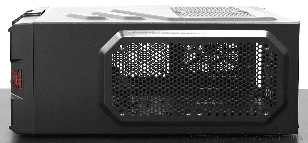 Корпус представляет собой моноблочную конструкцию классической компоновки. Размеры составляют 440x180x475 миллиметров, что соответствует формату Middle-Tower. Внешний вид можно назвать в меру агрессивным. В конструкции передней панели доминирует черный пластик. Стилизация корпуса выполнена под стать названию линейки — значительную часть передней панели занимают пластиковые элементы в виде литеры Х.