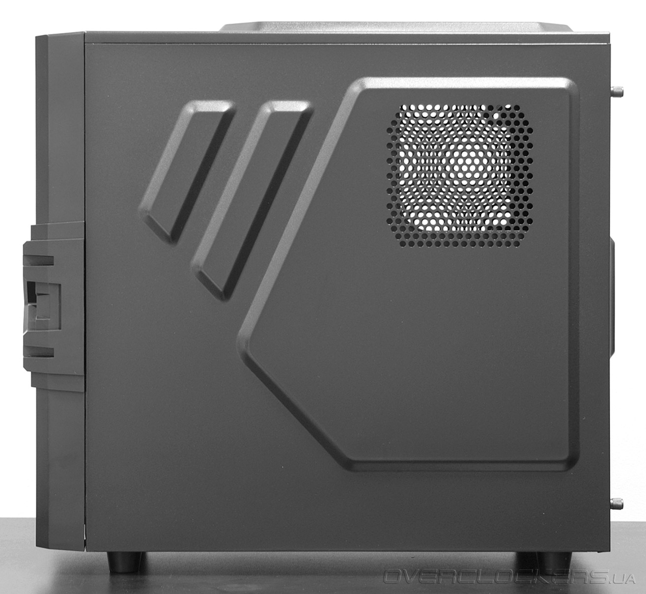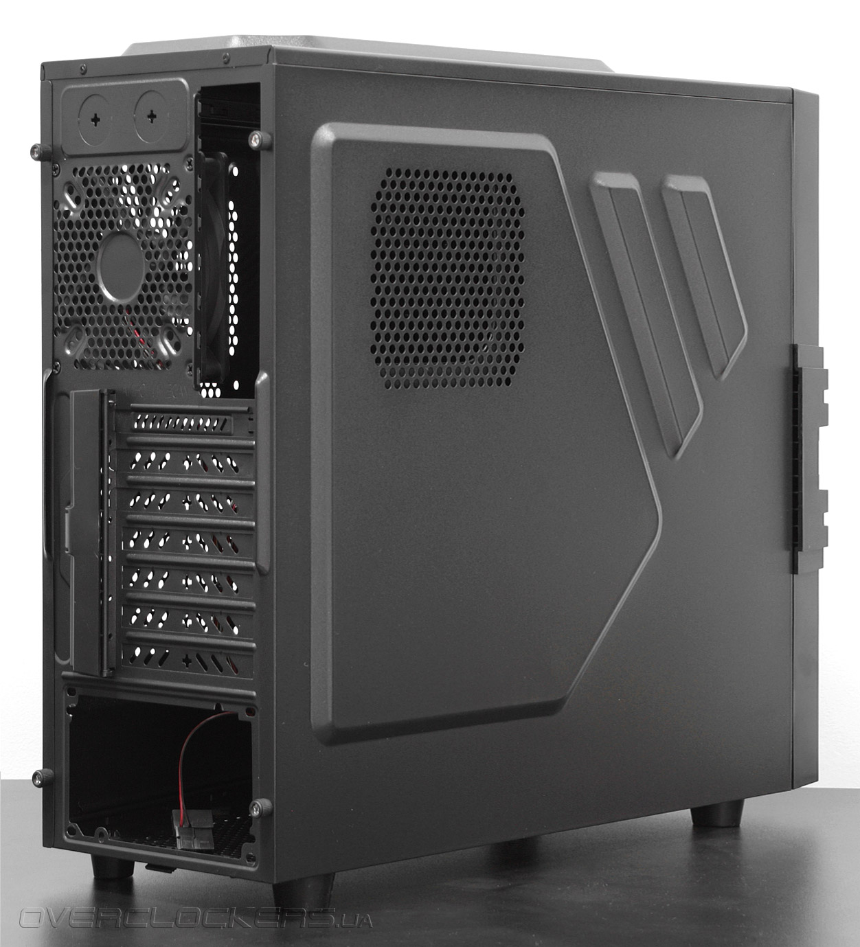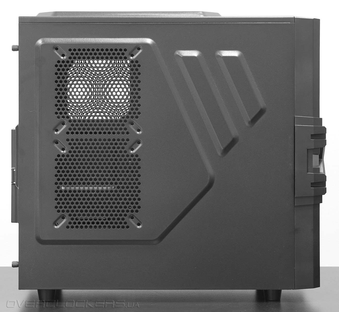 На правой боковой панели также видны вентиляционные отверстия, призванные улучшить температурный режим обратной стороны материнской платы, установленной в корпус.