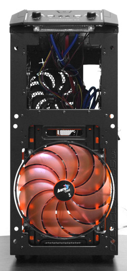 На задней панели в верхней части корпуса установлен комплектный 140-мм вентилятор.