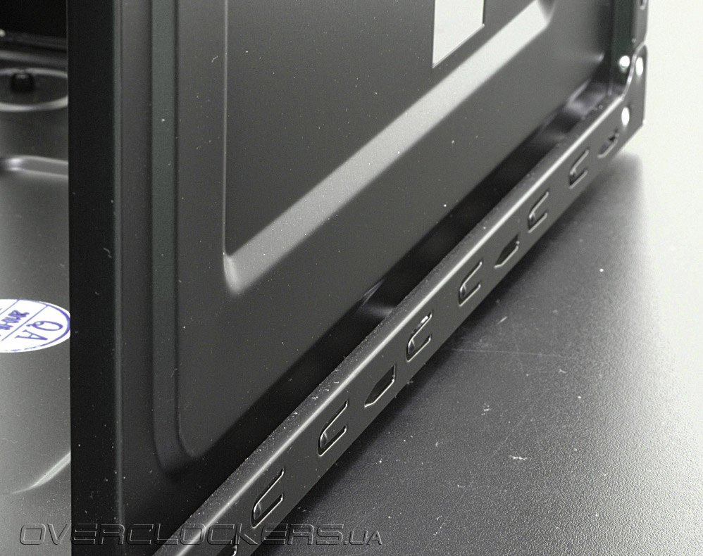 Ситуация с установкой блока питания довольно неоднозначна. С одной стороны, крепежные отверстия позволяют устанавливать блок питания как вентилятором вверх, так и вниз. А с другой — в нижней панели корпуса не предусмотрены вентиляционные отверстия.