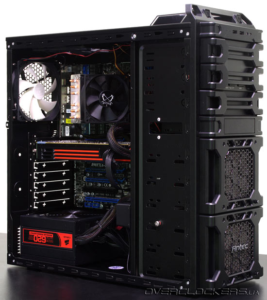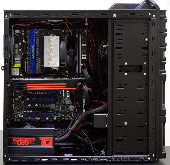 Всего можно установить шесть внутренних и одно внешнее устройств формфактора 3,5", и три — формата 5,25". Никаких средств быстрого монтажа не предусмотрено.