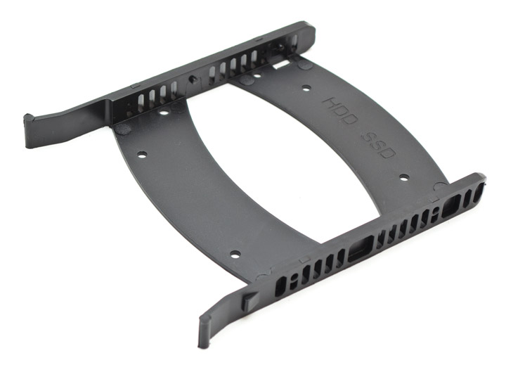 В каждую из двух салазок можно установить по одному 3,5″ или 2,5″ диску. В первом случае лоток оденется поверх накопителя, во втором потребуются крепежные винты. Демпферов для подавления вибрации здесь нет.