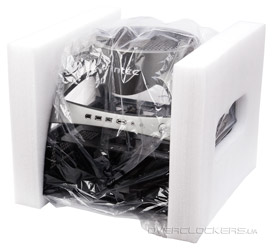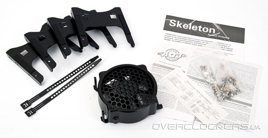 Внутри упаковки счастливый обладатель сего творения дизайнерской мысли обнаружит краткую инструкцию, комплект рамок для внешней установки 3,5-дюймовых накопителей, вентилятор, стяжки и набор винтов.
