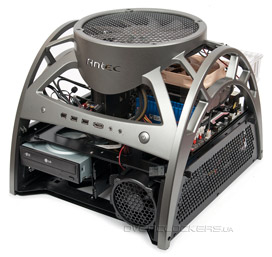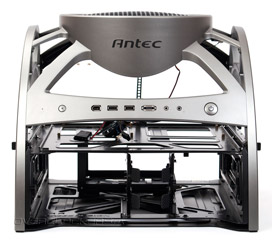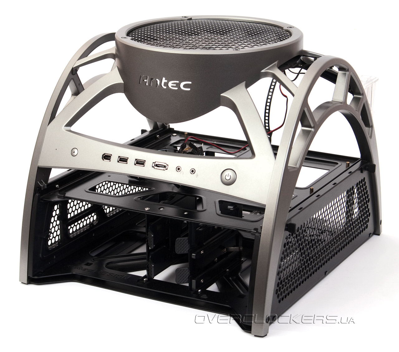 Бесспорно, Antec Skeleton является одним из самых оригинальных и экзотических корпусов, с интересным дизайном и эффектным внешним видом. Пожалуй, он единственный, способный стать настоящим украшением на рабочем столе, в витрине магазина или на выставке. Качественно выполненный из пластмассы и металла, он обладает отличной вентиляцией, не меньшая заслуга в которой отводится комплектному 250-мм вентилятору с разноцветной подсветкой. Несмотря на конструкторские особенности Skeleton, он позволяет установить два привода и до шести 3,5-дюймовых устройств, хотя и с некоторыми оговорками.