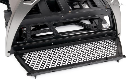 Основание корпуса, где устанавливаются все компоненты системы, выполнено из стали толщиной 0,8 мм. При необходимости может использоваться как отдельная единица в виде бенч-стенда (к этому мы вернемся чуть ниже). Облицовка Skeleton изготовлена из качественного пластика серого цвета. Все детали подогнаны четко, ничего не шатается и не скрипит.