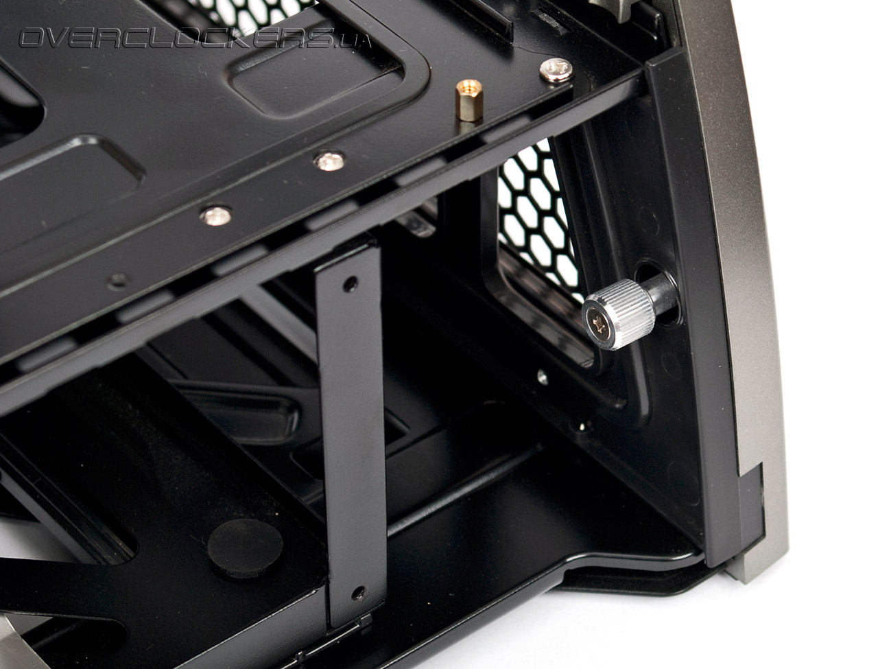 Антивибрационные прокладки предусмотрены даже здесь, но крепление рамки к Skeleton не внушает особого доверия. Скорее, по бокам лучше располагать флоппи-дисковод или кардридер, чем жесткий диск.