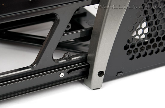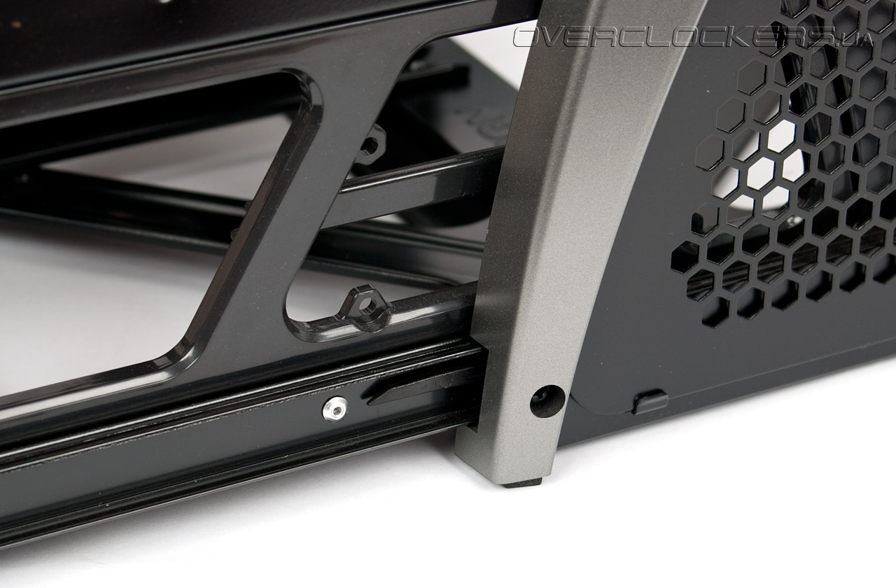 Перфорированные боковые стенки основания сделаны съемными, чтобы облегчить доступ к кабелям и шлейфам при их укладке. Достаточно отжать две защелки, чтобы снять стенки.