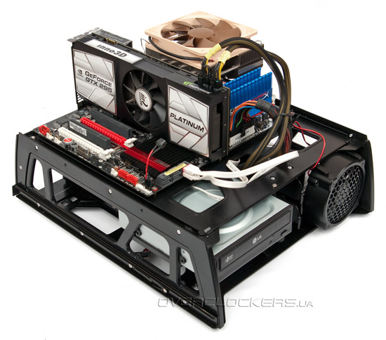 Если же использовать сугубо шасси, то вариант становится просто идеальным, но у него тогда отсутствует панель с кнопками включения и сброса системы — придется прибегать к подручным средствам, типа пинцета или отвертки, для старта системы. Но такой бенч-стенд выходит слишком дорогим.
