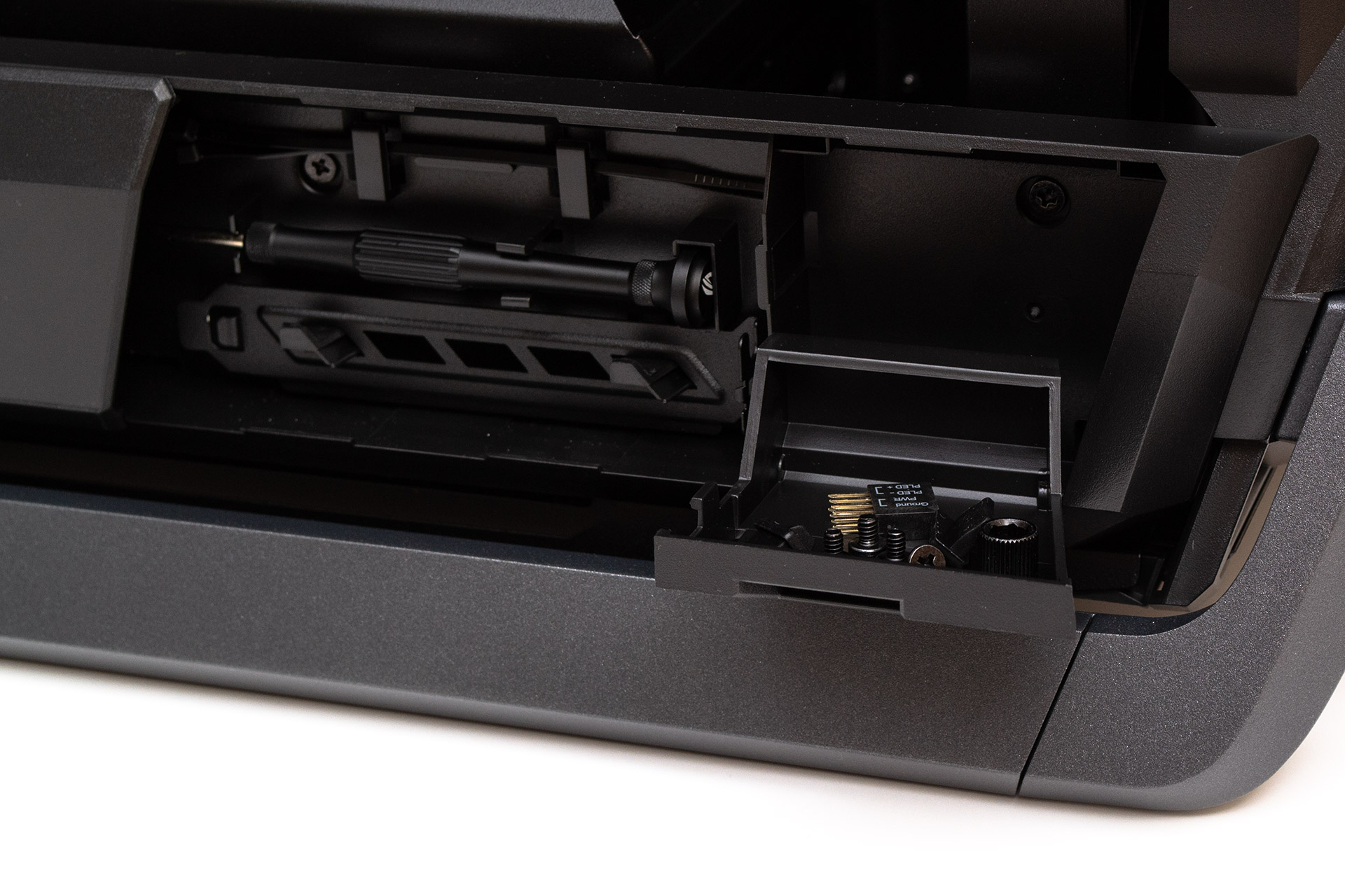 Под панелью прячется отсек для инструментов и еще один откидной маленький ящик для винтиков.