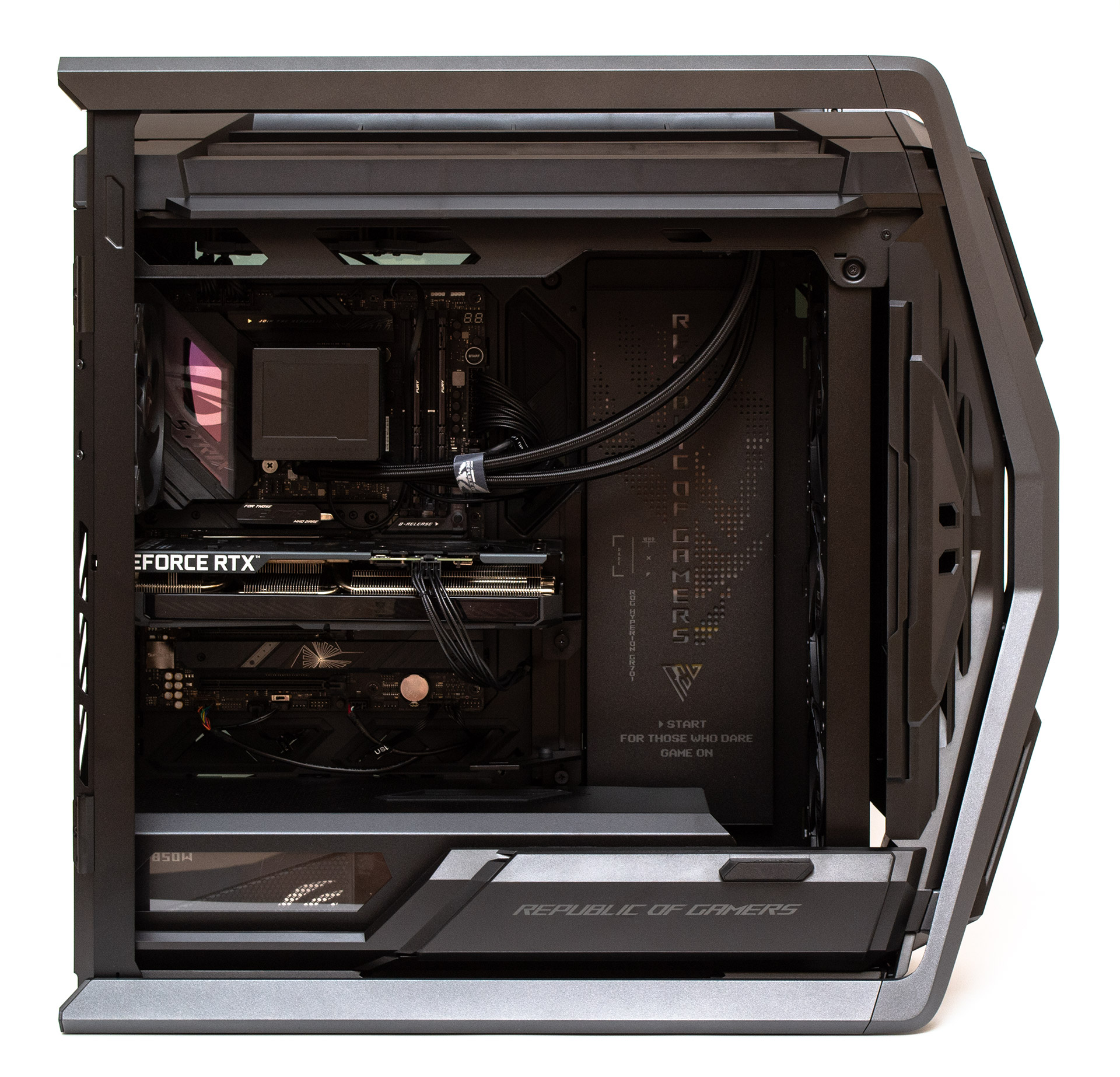 ASUS ROG Hyperion GR701 является очень эффективным и эффектным шасси, построенным на грани между корпусом и открытым стендом. Это огромная и тяжелая конструкция, способная вместить почти любые компоненты и обеспечить отличную вентиляцию. Космическая внешность сочетается с практическими решениями в интерьере и экстерьере, что, безусловно, понравится энтузиастам. Особенно если есть желание собрать внутри что-то невероятное.