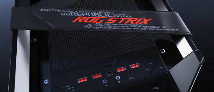 На боку правой грани встроена мелкая тряпичная бирка с логотипом ROG. Очень мило.