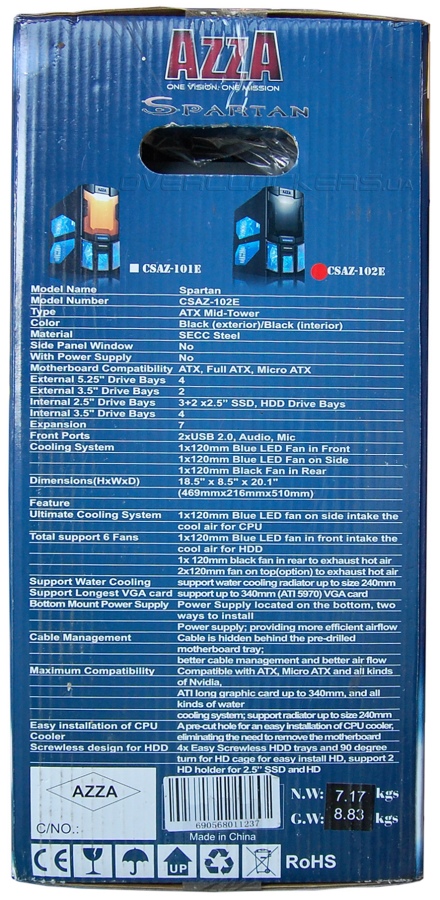 Корпус имеет классическую цельную конструкцию. Выполнен в формате Middle-Tower размерами 469x216x510 мм. Дизайн нельзя назвать сверхоригинальным, но выглядит Spartan вполне симпатично.