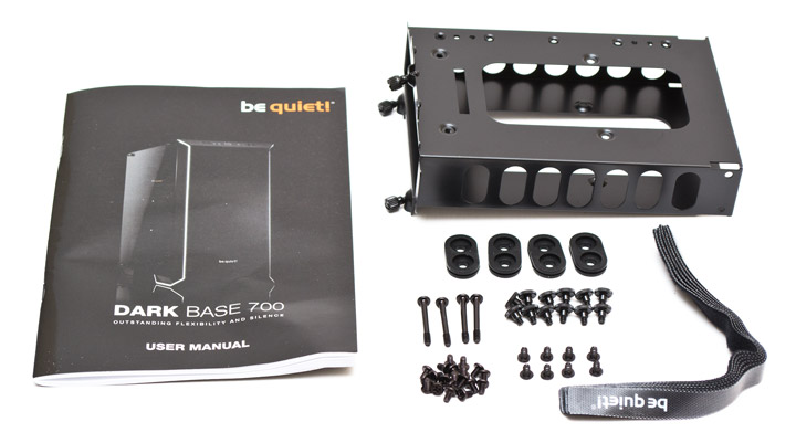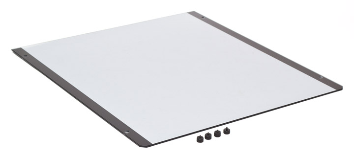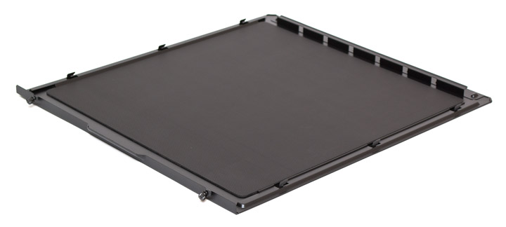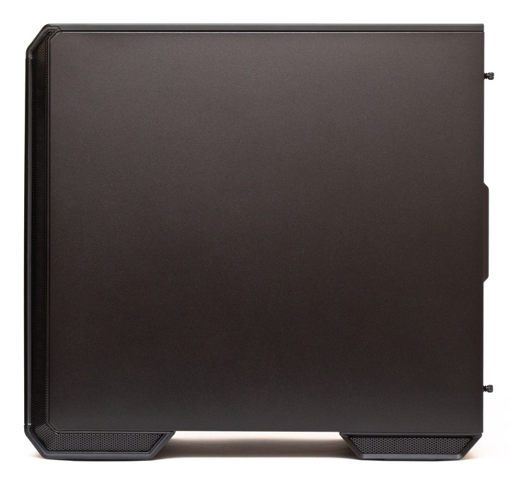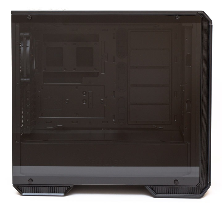 Как и в модели Dark Base Pro 900, шасси Dark Base 700 имеет левую боковую панель, полностью изготовленную из закаленного стекла, толщиной 4 мм. Через него отлично видно всю систему внутри. На передних углах панели есть характерные скосы, позволяющие всегда монтировать ее в правильной ориентации. В случае сборки корпуса в BTX варианте, с поворотом поддона материнской платы налево, стекло можно перевесить на правую сторону, переставив его крепления. Левая и правая панели полностью взаимозаменяемы.