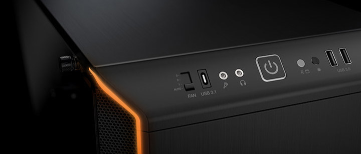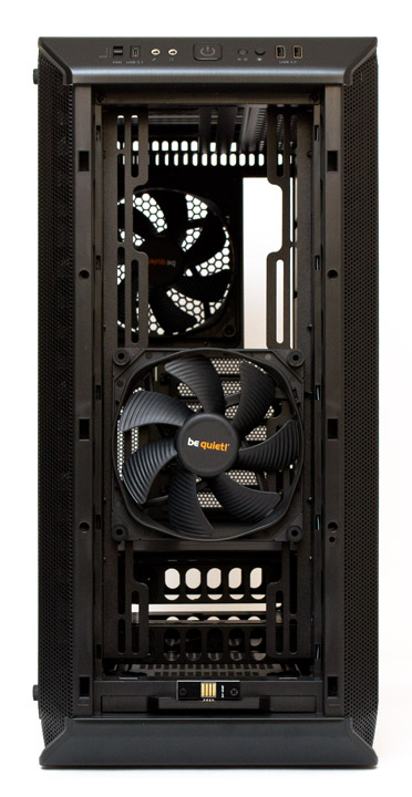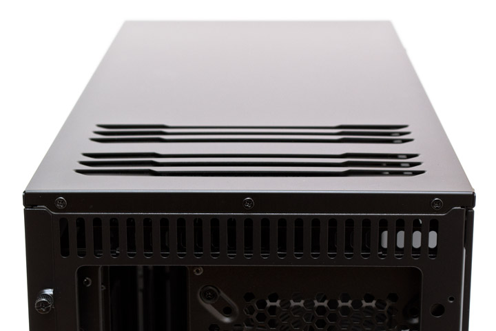 В отличие от Dark Base 900, где для вентиляции сверху были длинные боковые отверстия, здесь вся вытяжка реализована при помощи шести вырезов сверху, и решетки над посадочным местом заднего вентилятора.