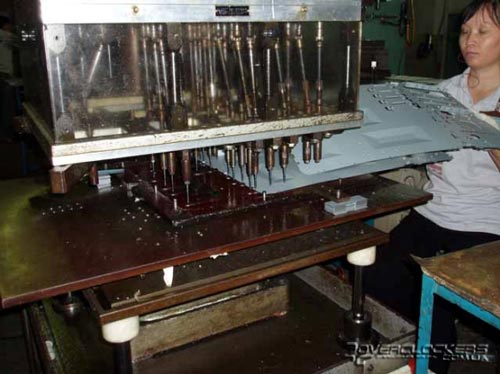 Полученные пластины поступают в цех штамповки. Перед описанием штамповки хотелось бы рассказать о так называемых "пресс-формах". Это те самые конструкции, между которыми сжимается металлическая пластина для придания ей нужной формы. Обычно каждый элемент проходит несколько прессов со своими пресс-формами, а для сборки корпуса требуются десятки различных элементов. В итоге на производство одного каркаса требуется 30-60 прессов и соответствующее количество пресс-форм. Их изготовлением обычно занимается специальный инструментальный цех. Каждая пресс-форма должна выдерживать нагрузку под миллион штампов в месяц в течение многих лет. Поэтому их производят из дорогой и твердой инструментальной стали. Обработка такой заготовки может легко длиться месяц-другой. Сначала инженеры моделируют форму и этапы обработки болванки. Потом последовательно на различных станках начинается работа над ней. Самые тонкие элементы выжигают специальной электрической дугой, позволяющей делать нестандартные и очень точные вырезы. Пару миллиметров металла такой аппарат может выжигать сутки. В конце пресс-форму дорабатывают и отшлифовывают вручную. Стоимость изготовления одной пресс-формы колеблется от 2-х до 20 тысяч долларов. И таких 50 штук на корпус.