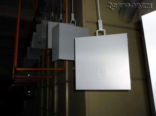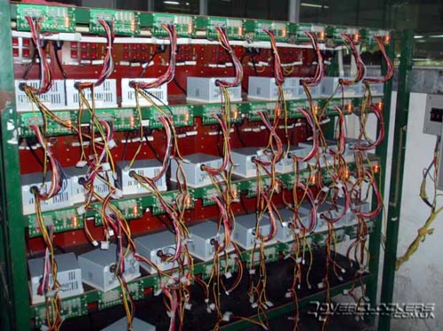 Блоки, прошедшие этот этап попадают на испытательный стенд. Каждый блок подключается к нагрузке, соответствующей примерно 80% номинальной. После этого блоки помещаются в термокамеру с температурой 40-45 градусов и тестируются 30-60 минут. Любой блок, не прошедший тестирование снимается и уходит на переборку.