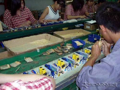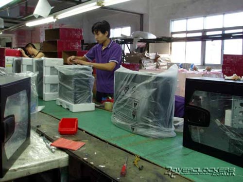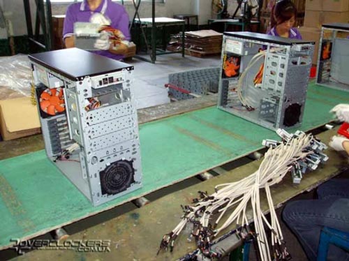 Также стоит обратить внимание, что на большинстве производств имеется несколько сборочных линий, плюс в данной статье использованы фотографии с различных предприятий. Поэтому не удивляйтесь, если на различных этапах участвуют компоненты различных корпусов и БП, отобраны просто наиболее удобные кадры.