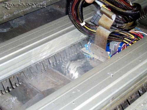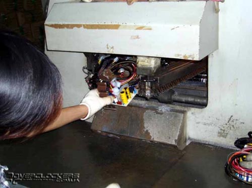 Пайка происходит чаще всего в несколько этапов, поэтому отверстия, которые нужны для следующей установки проводов или разъемов чаще всего заглушаются группами зубочисток. Это универсальное средство можно увидеть практически на всех фабриках, просьба владельцев "термалтейков" и "кулер-мастеров" не обольщаться и не надеяться, что их блоки собираются роботами в стерильных лабораториях.
