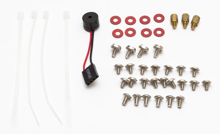 Комплект поставки выглядит скромно, инструкции по сборке нет. Зато в небольшом полиэтиленовом пакетике есть следующие детали:
