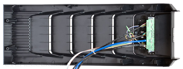 Кроме того, верхняя панель очень легко снимается. Для этого нужно освободить внутри провода, вынуть две неприметные резиновые заглушки сзади, открутить два винта и сдвинуть панель вперед. Радует то, что и дизайнеры и конструкторы здесь явно старались.